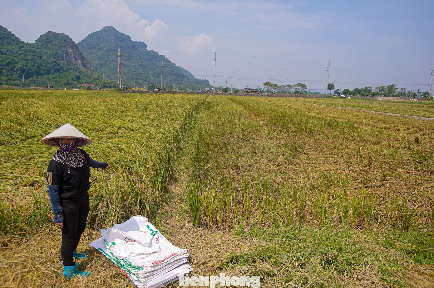 "Chạy bão nên rất vội, hôm nay có máy gặt nên đỡ vất vả, hôm trước không có máy gặt, tôi phải đi nhờ và thuê hơn người gặt tay từ ngày đến tối muộn. Tốn khoảng hơn 2 triệu đồng nhưng cũng chỉ gặt được mấy sào", cô Lý (63 tuổi, thôn Phương Hạnh, xã Xuân Mai).
