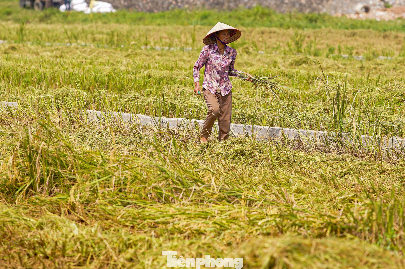 Tranh thủ những ngày khô ráo khi chưa bị ảnh hưởng bởi cơn bão số 11, nông dân khu vực ngoại thành Hà Nội hối hả xuống đồng thu hoạch lúa và hoa màu để tránh thiệt hại, mất trắng.