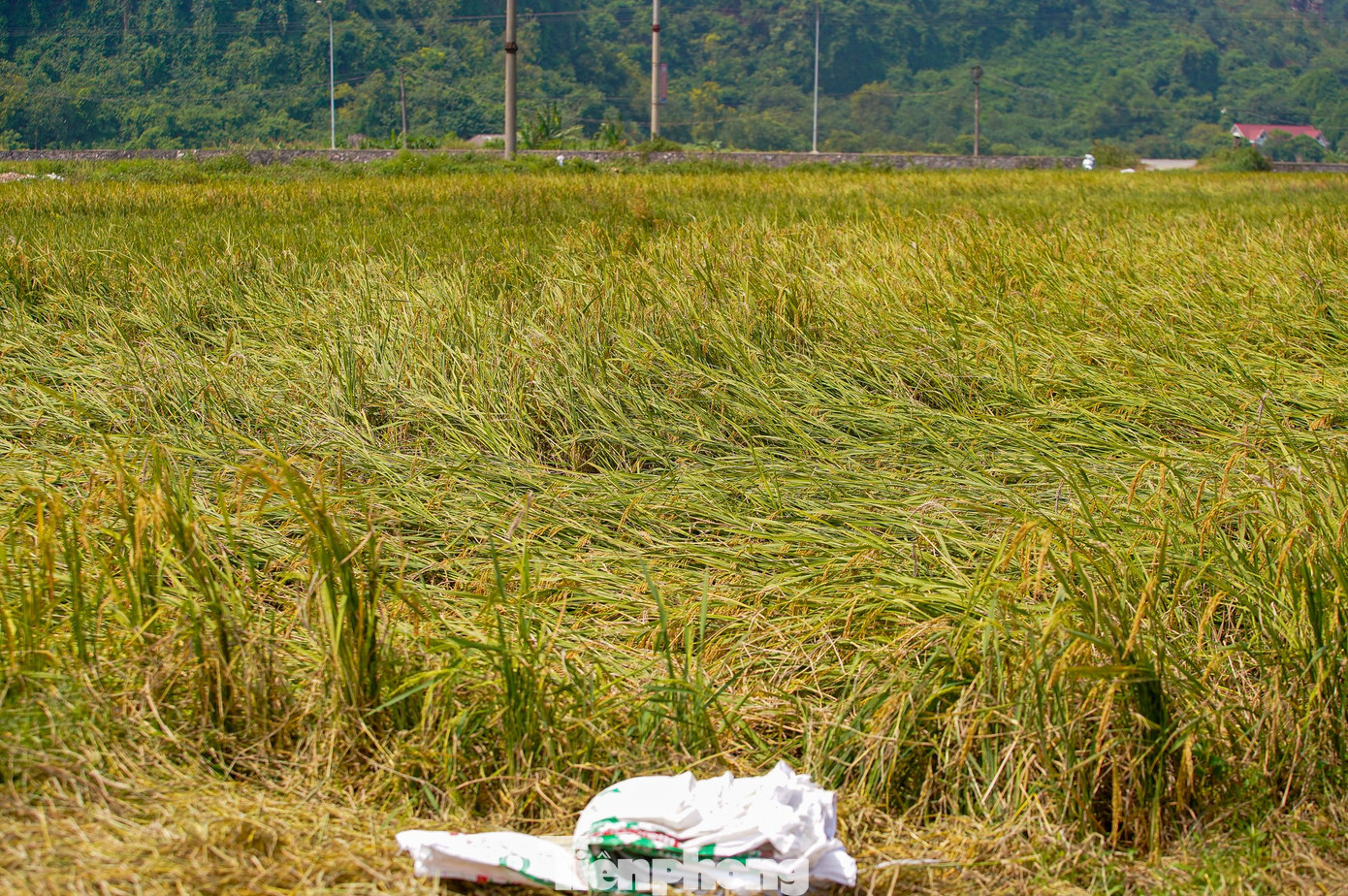 Nhiều cánh đồng lúa gãy rạp, lúa bị ngâm nước lâu ngày sẽ hư hỏng, nảy mầm.
