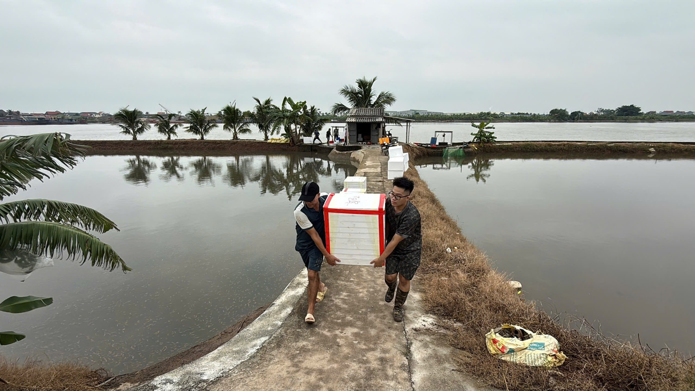 Sau khi thu hoạch, làm sạch và cấp đông, những thùng rươi đầu tiên xuất bán cho thương buôn khắp các tỉnh miền Bắc.