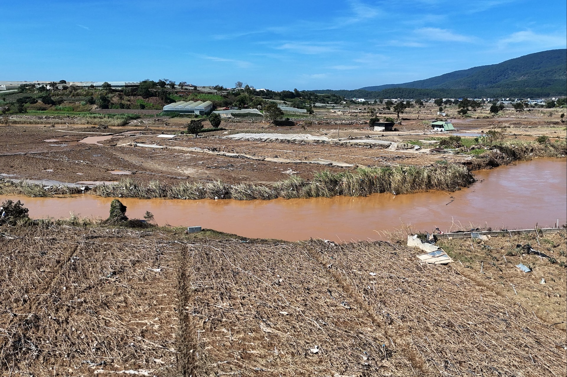 Những ngày sau mưa lũ, vùng trọng điểm trồng rau xã Ka Đô (Lâm Đồng) trong tình trạng tiêu điều. Hơn 200ha rau màu của người dân thôn Lạc Thạnh sau khi lũ đi qua trở thành cánh đồng hoang.