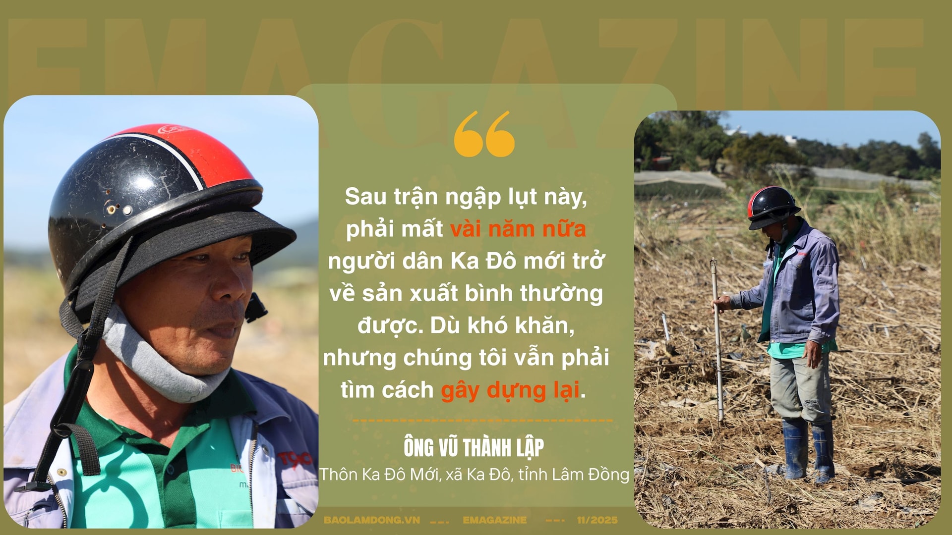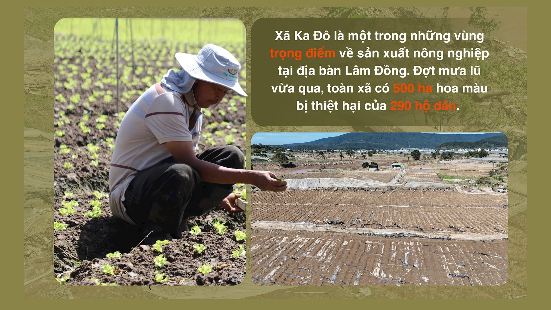 Xã Ka Đô là một trong những vùng trọng điểm về sản xuất nông nghiệp tại địa bàn Lâm Đồng. Đợt mưa lũ vừa qua, toàn xã có 500ha hoa màu bị thiệt hại của 290 hộ dân. Tổng thiệt hại về sản xuất nông nghiệp của bà con khoảng 250 tỷ đồng.