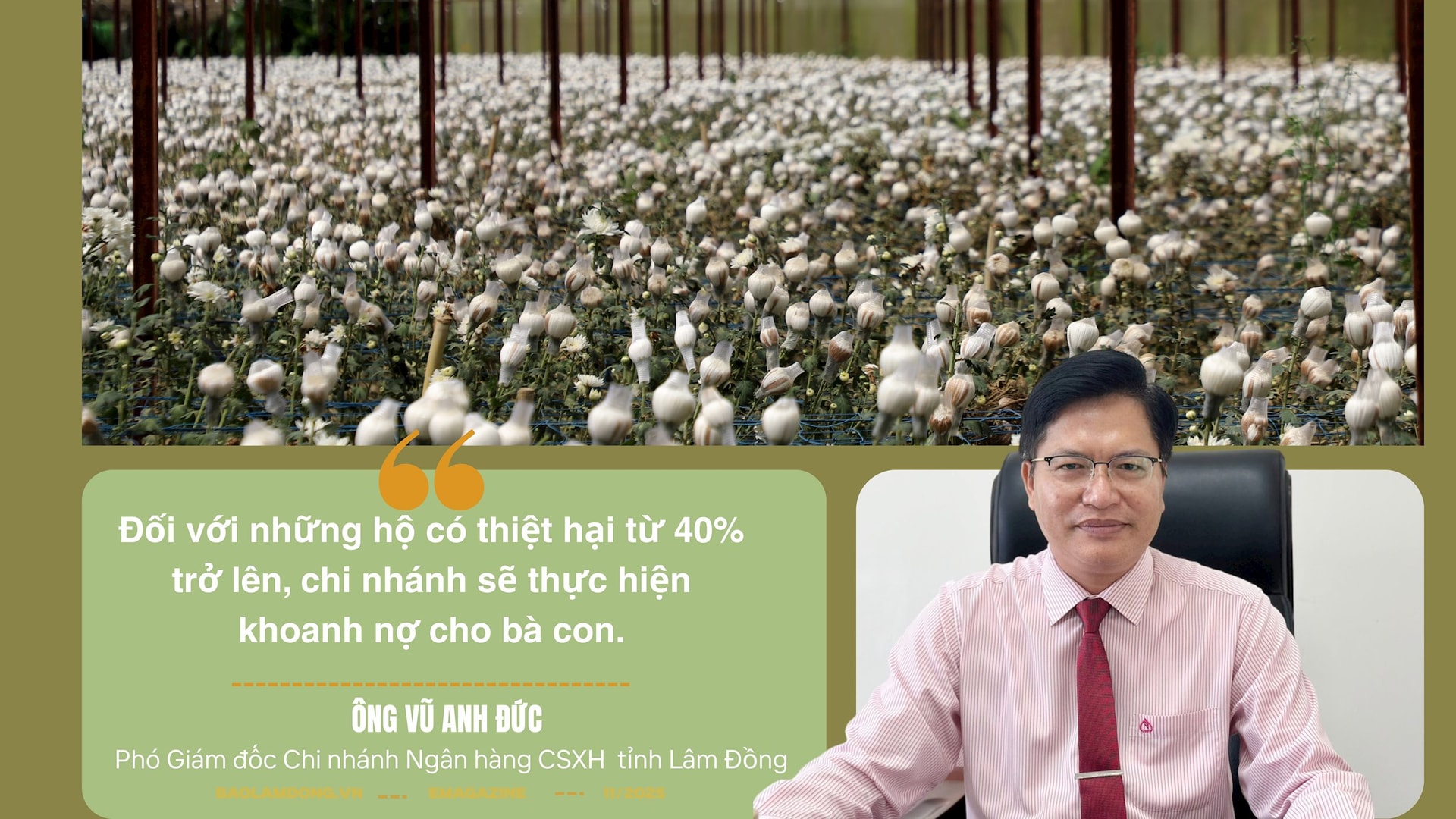 "Đối với những hộ có thiệt hại từ 40% trở lên, Chi nhánh sẽ thực hiện khoanh nợ cho bà con”, ông Vũ Anh Đức, Phó Giám đốc Chi nhánh Ngân hàng CSXH tỉnh Lâm Đồng.