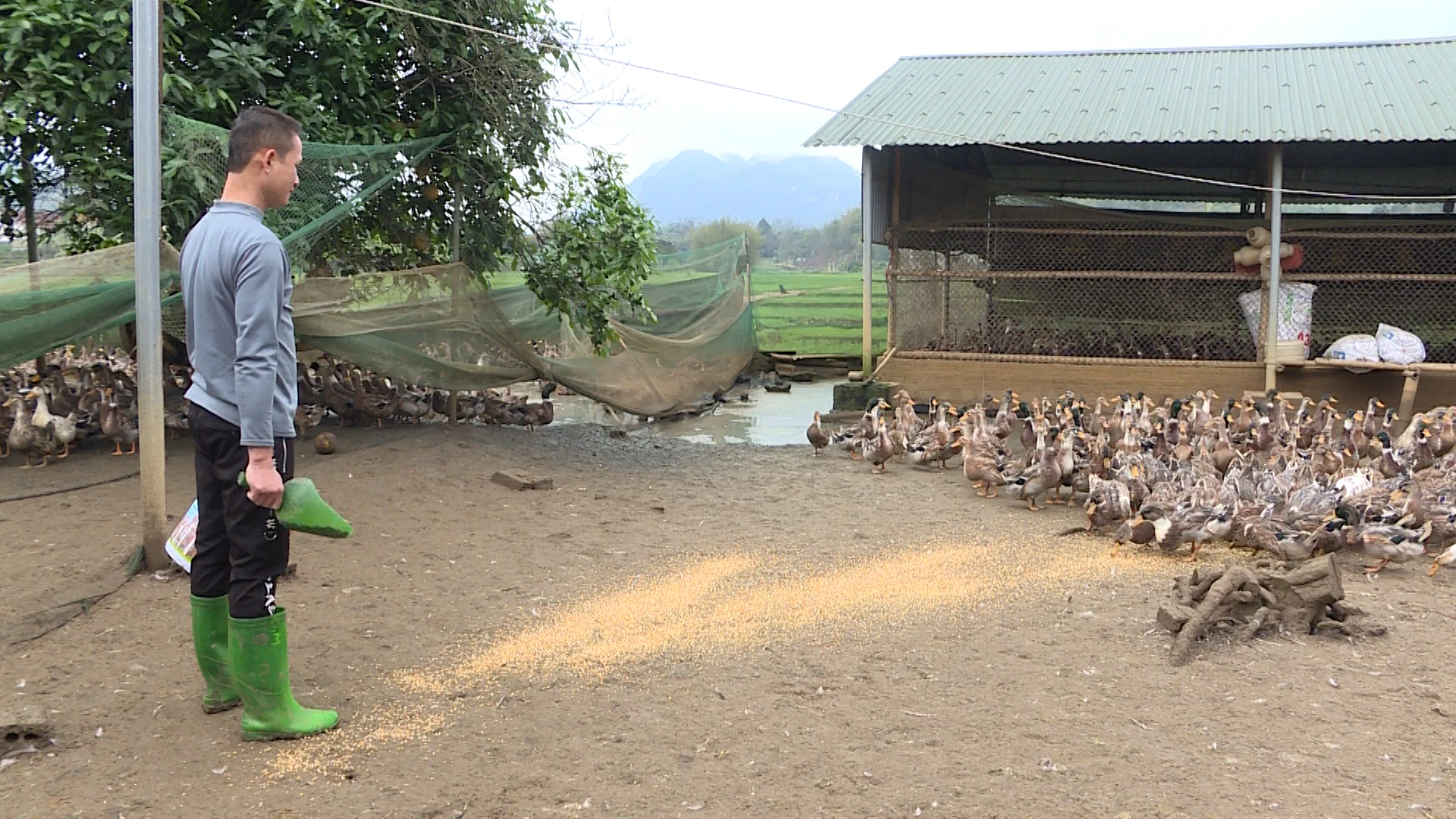 Anh Lò Văn Phú chăm sóc đàn vịt Cổ Lũng.