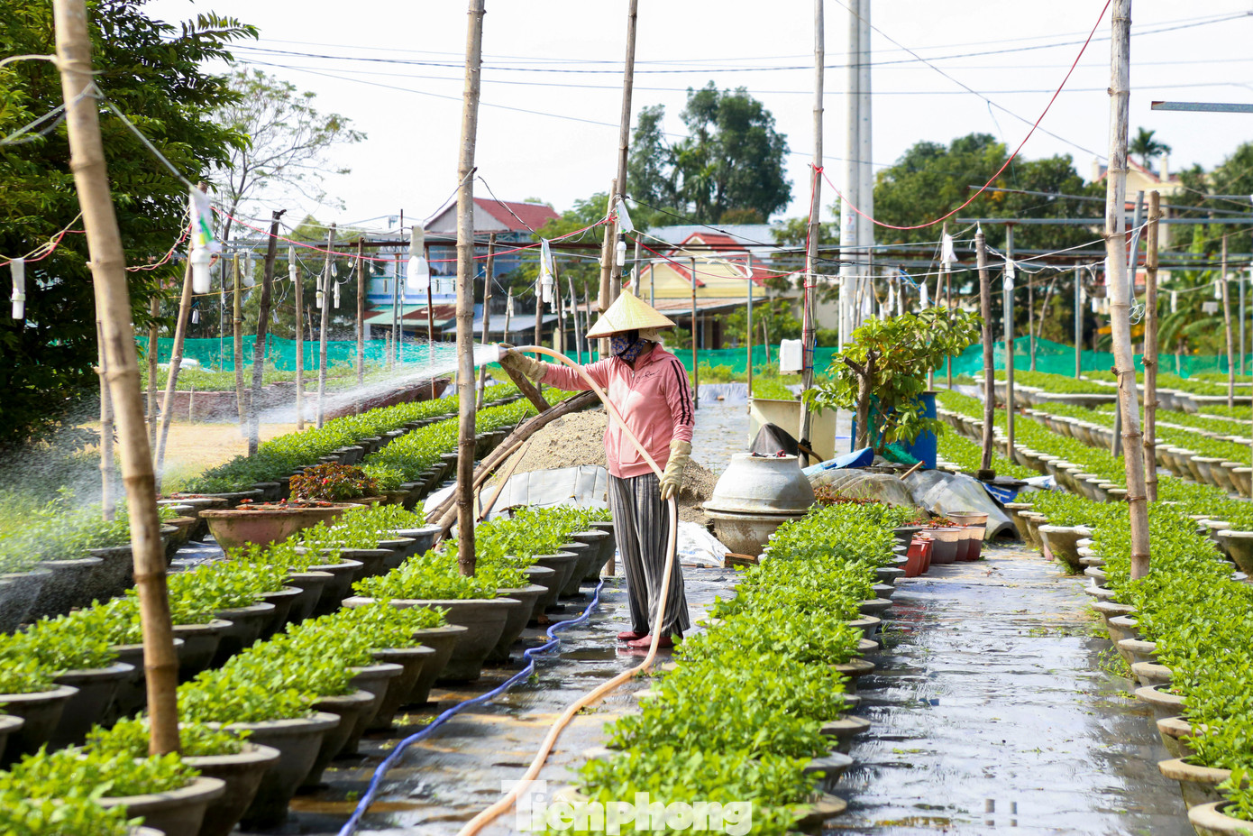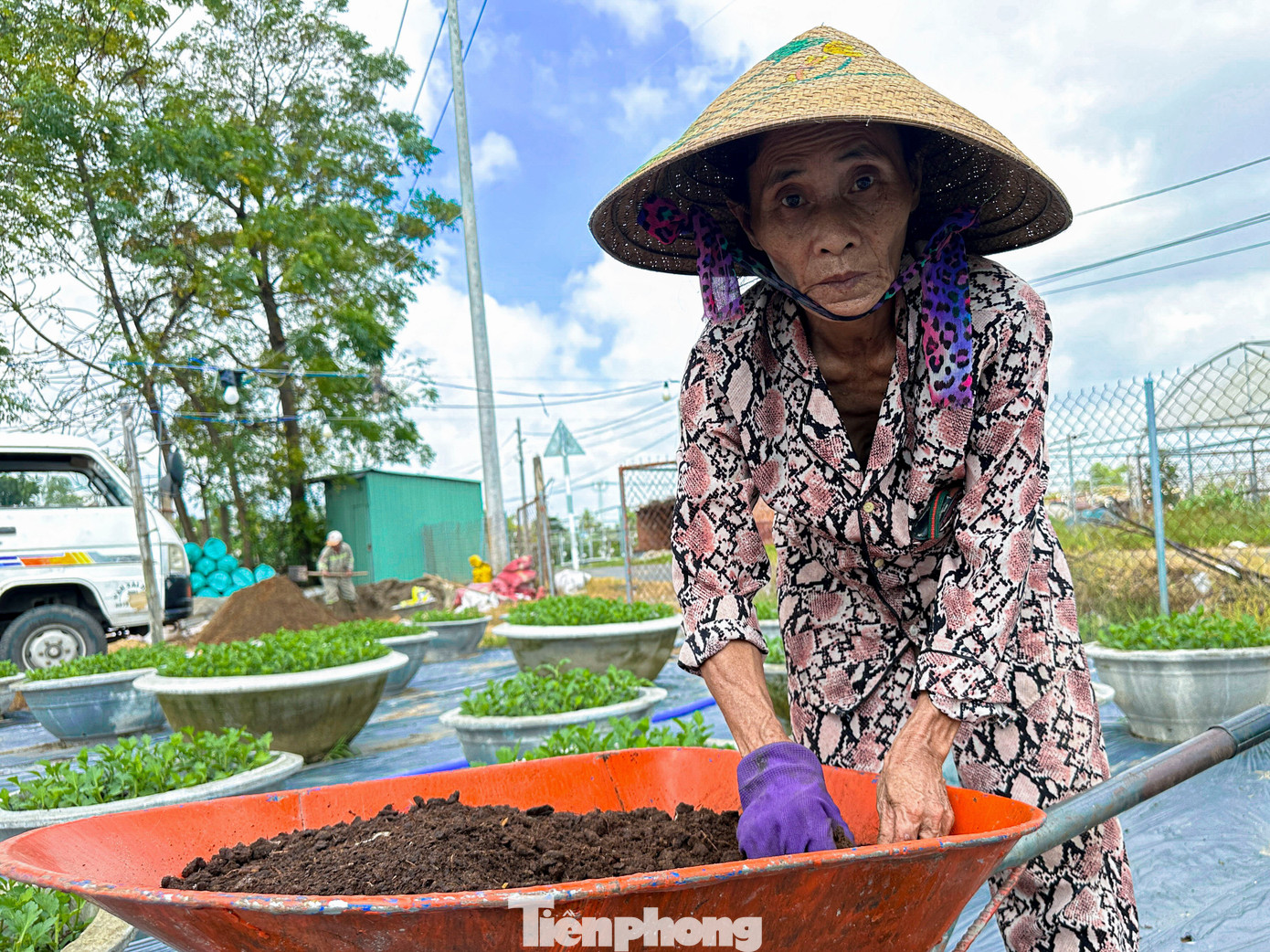 “Thời gian qua mưa lũ liên tiếp khiến nhiều chậu hoa bị hư hại, lá úng và thối. Khi trời hửng nắng, bà con phải tranh thủ bón phân, ngắt lá, chăm sóc lại để hạn chế thiệt hại, giúp cây phục hồi kịp vụ Tết”, bà Phùng Thị Liên chia sẻ.