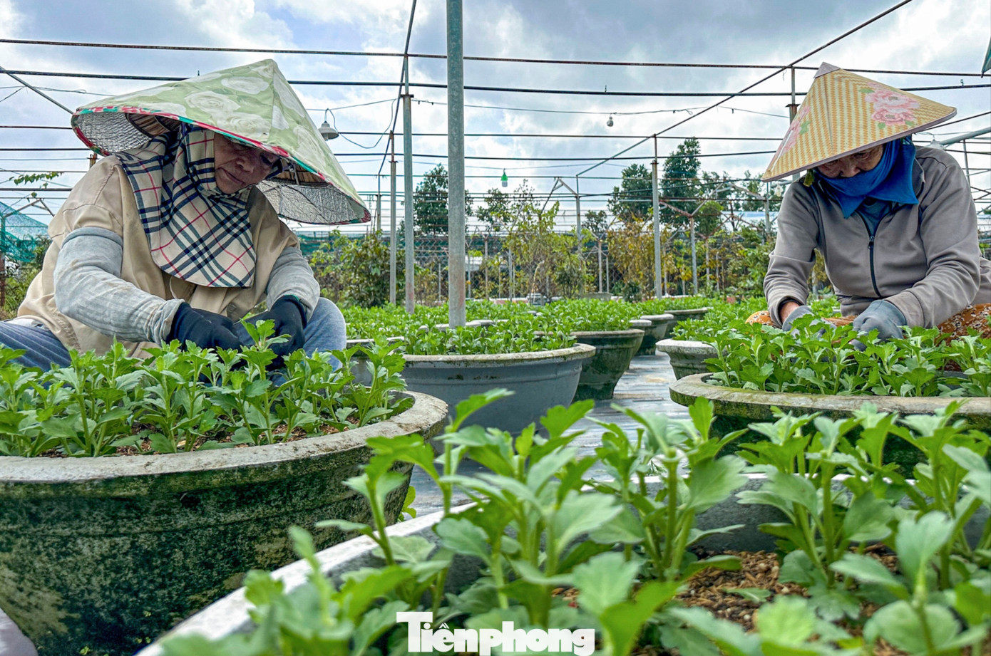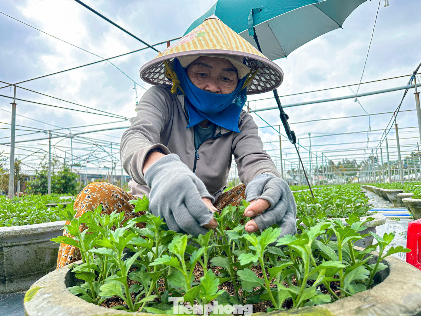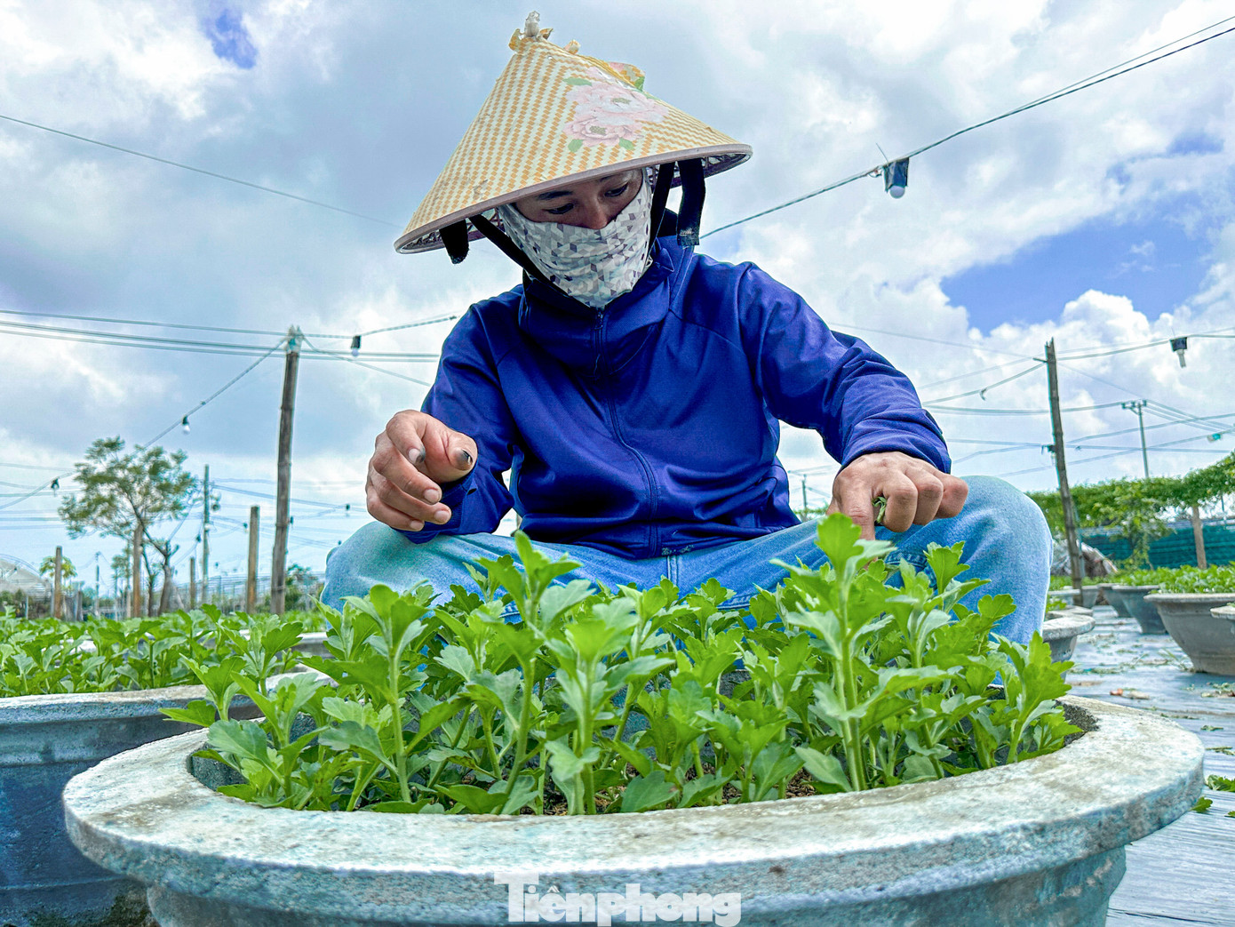 Bà Nguyễn Thị Sung (trú phường Hòa Xuân, TP Đà Nẵng) cho biết, từ đầu tháng 8 âm lịch, nông dân tại làng hoa đã bắt đầu xuống giống vụ hoa Tết. “Năm nay, gia đình tôi trồng hơn 1.000 chậu cúc cùng một số loại hoa khác để phục vụ thị trường Tết. Những ngày này, chúng tôi đang tập trung ngắt đọt, bón phân, phun thuốc để hoa phát triển đồng đều, kịp nở đúng dịp”, bà Sung chia sẻ.