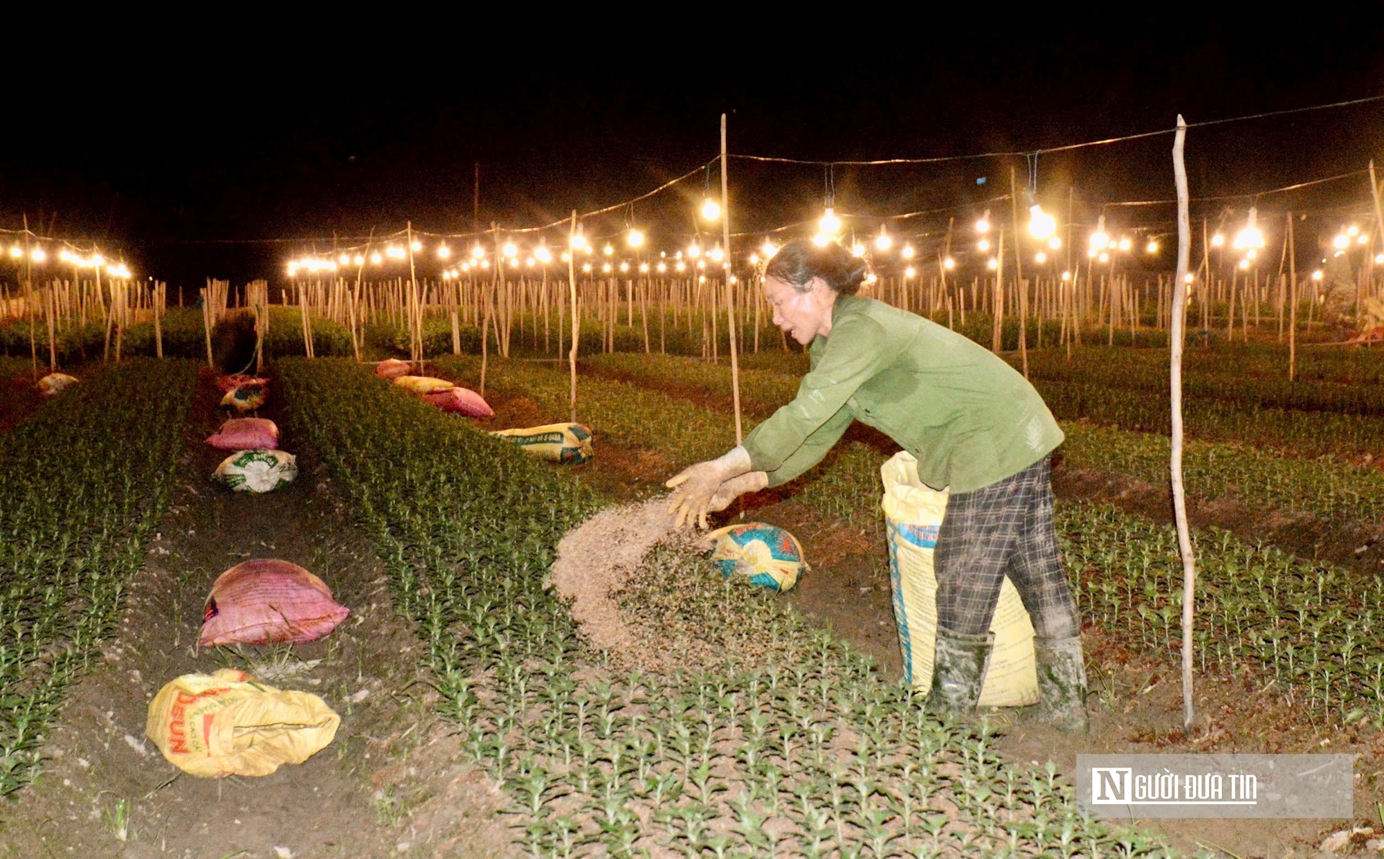Để hoa nở đúng vào dịp Tết, người nông dân nơi đây đã tất bật từ sáng tới tối ra đồng thắp đèn, ươm trồng, chăm sóc các loại hoa