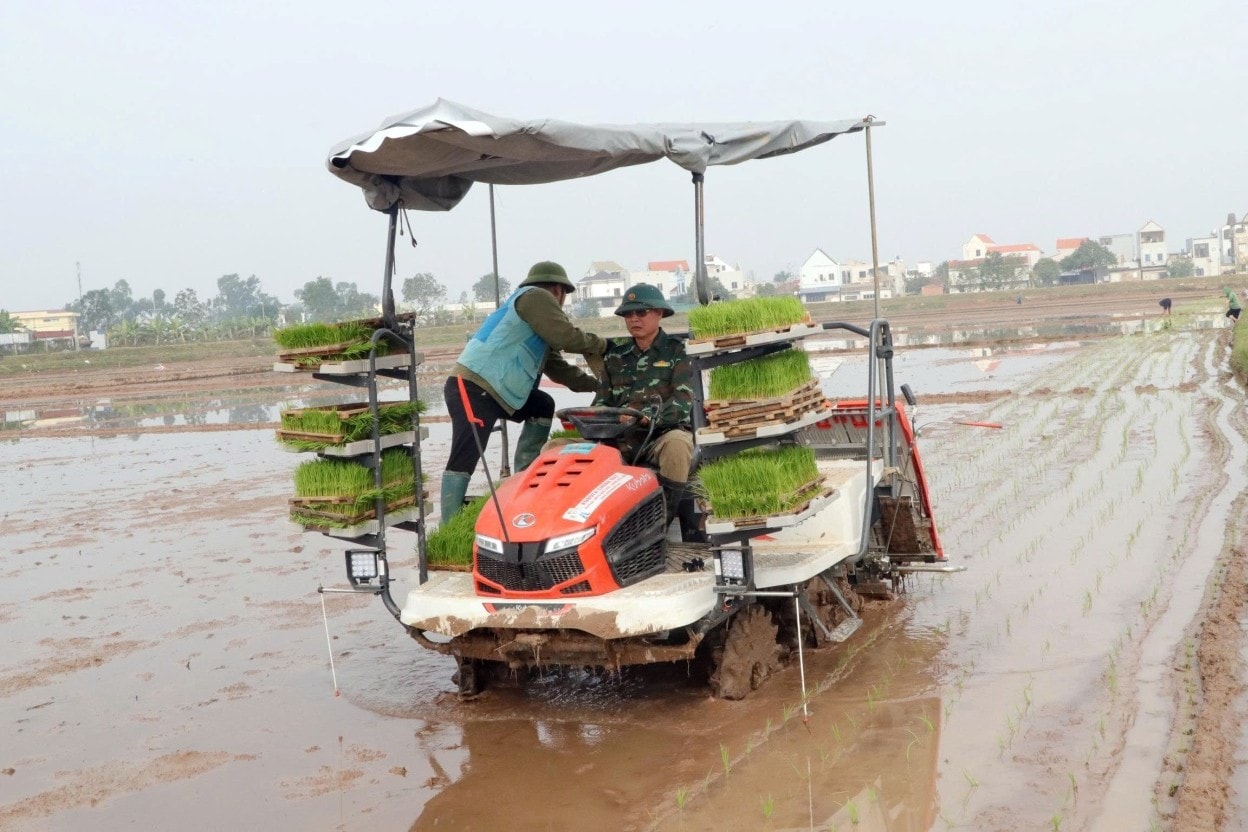 Riêng tại khu đồng Sờ thuộc Hợp tác xã Nông nghiệp Hữu Văn, gần 50ha được triển khai cấy hoàn toàn bằng máy, với 10.444 khay mạ được chuẩn bị phục vụ sản xuất. Việc áp dụng cơ giới hóa trong khâu cấy không chỉ giúp bảo đảm tiến độ thời vụ mà còn tạo tiền đề để triển khai đồng bộ các khâu chăm sóc, bảo vệ thực vật sau này.