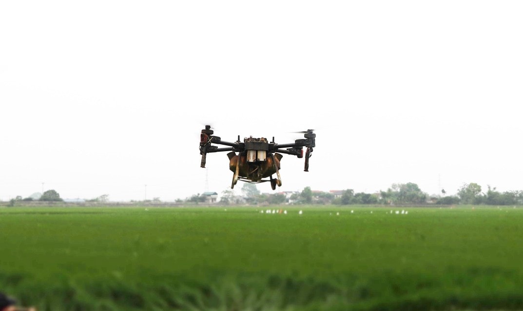 Khi drone hoạt động trên cánh đồng, từng lượt bay đều đặn mang theo làn thuốc phủ khắp ruộng lúa, góp phần kiểm soát sâu bệnh kịp thời, bảo đảm cho cây lúa sinh trưởng ổn định. Đây là giải pháp phù hợp trong bối cảnh sản xuất nông nghiệp đang từng bước chuyển sang hướng hiện đại, ứng dụng công nghệ cao.