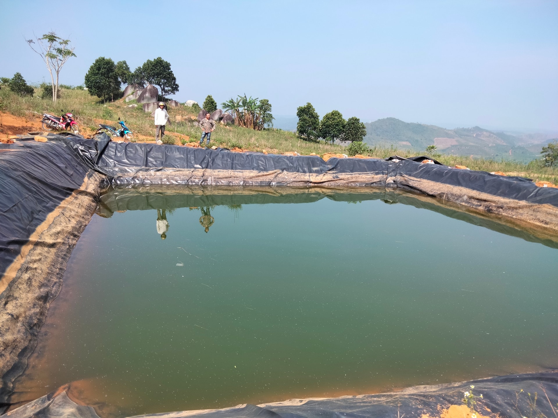 Để chủ động nguồn nước tưới, nhiều hộ dân xã Đắk Mil đào ao lót bạt để bơm nước dự trữ nguồn nước trong mùa khô