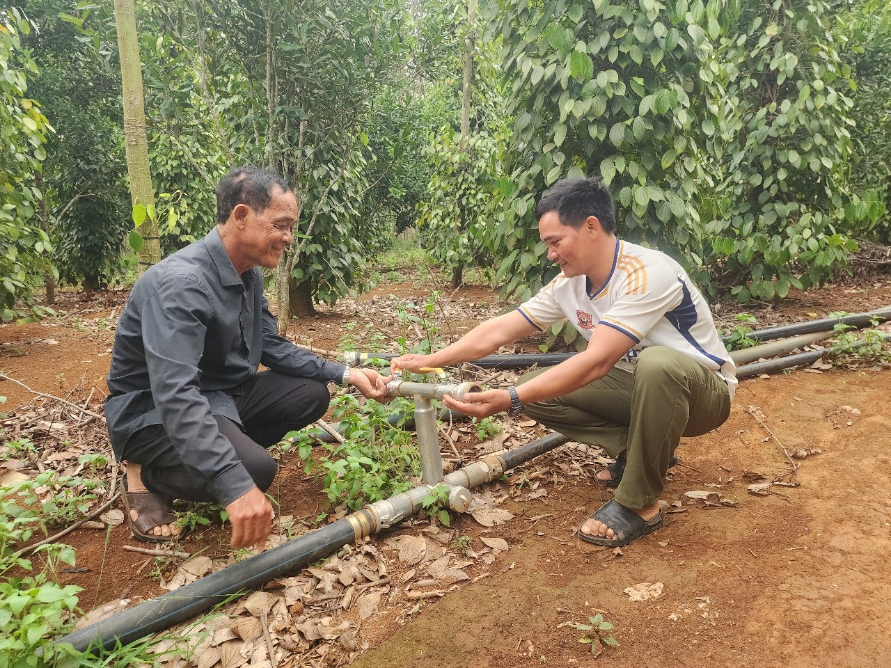 Không chỉ chủ động nguồn nước, người dân còn thay đổi cách chăm sóc cây trồng. Một số vườn cà phê áp dụng tưới tiết kiệm theo từng giai đoạn sinh trưởng, kết hợp bón phân hợp lý để cây phát triển bền vững.