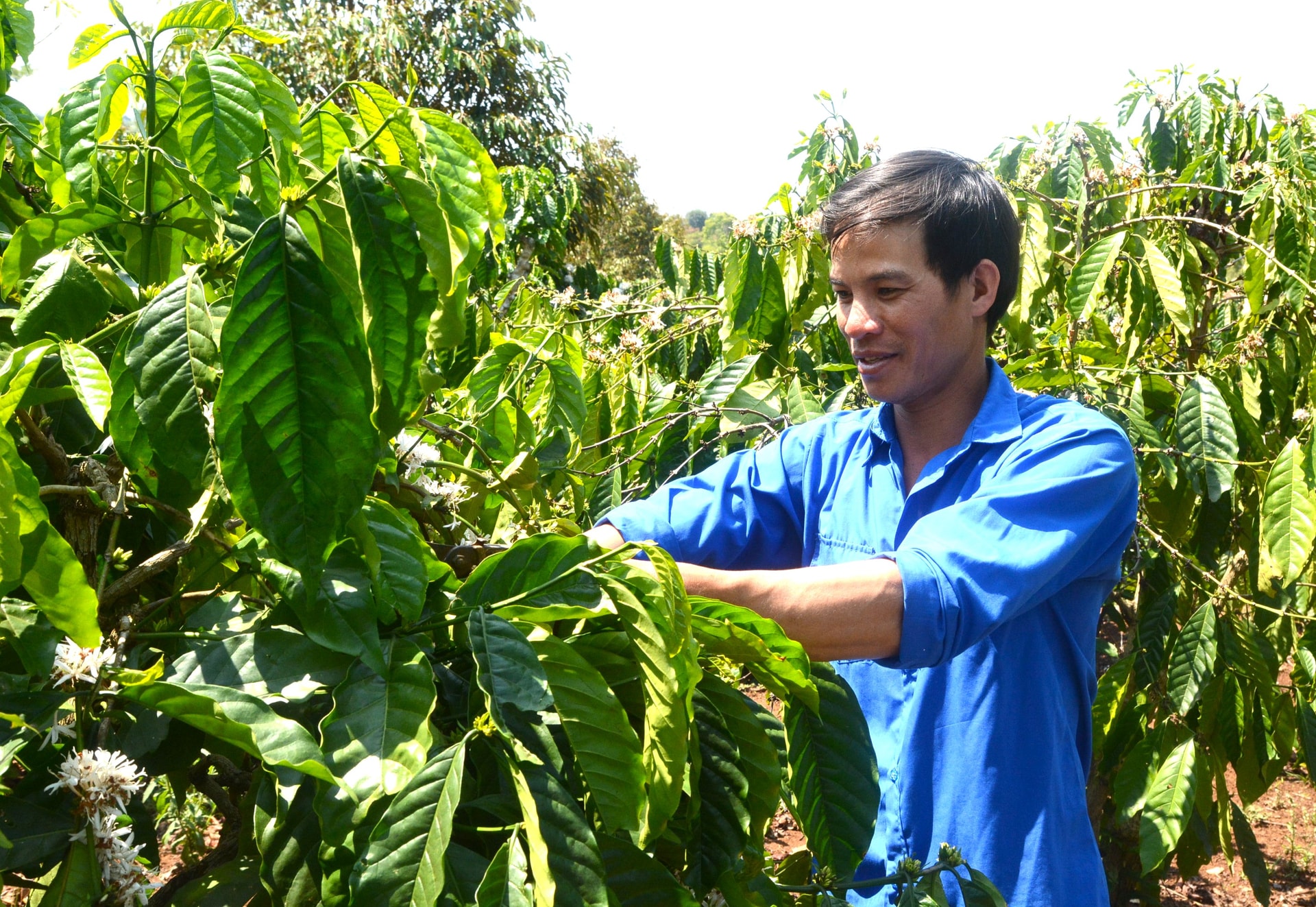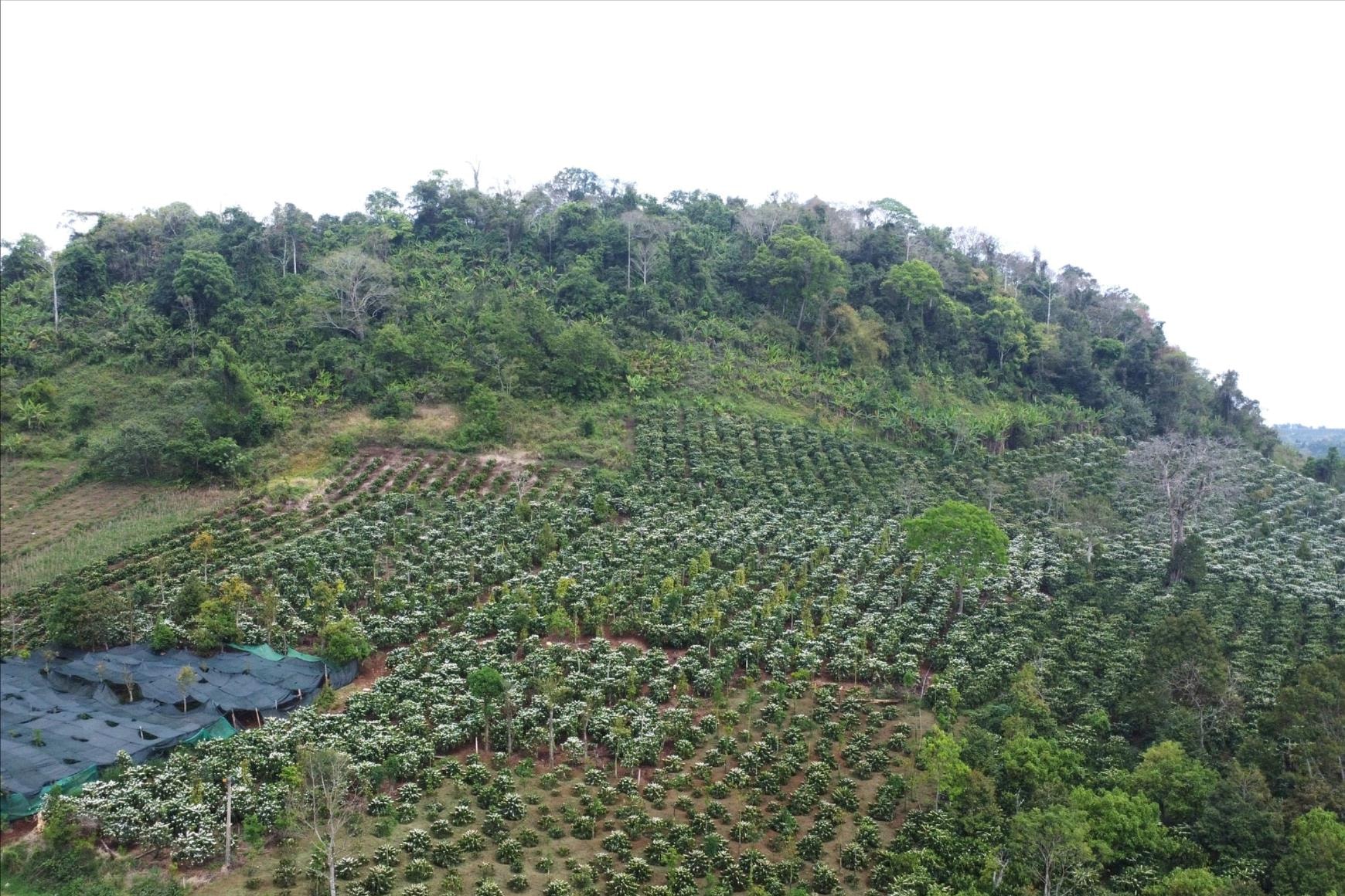 Nhiều diện tích cà phê sau khi được tưới đủ nước đã nở bông