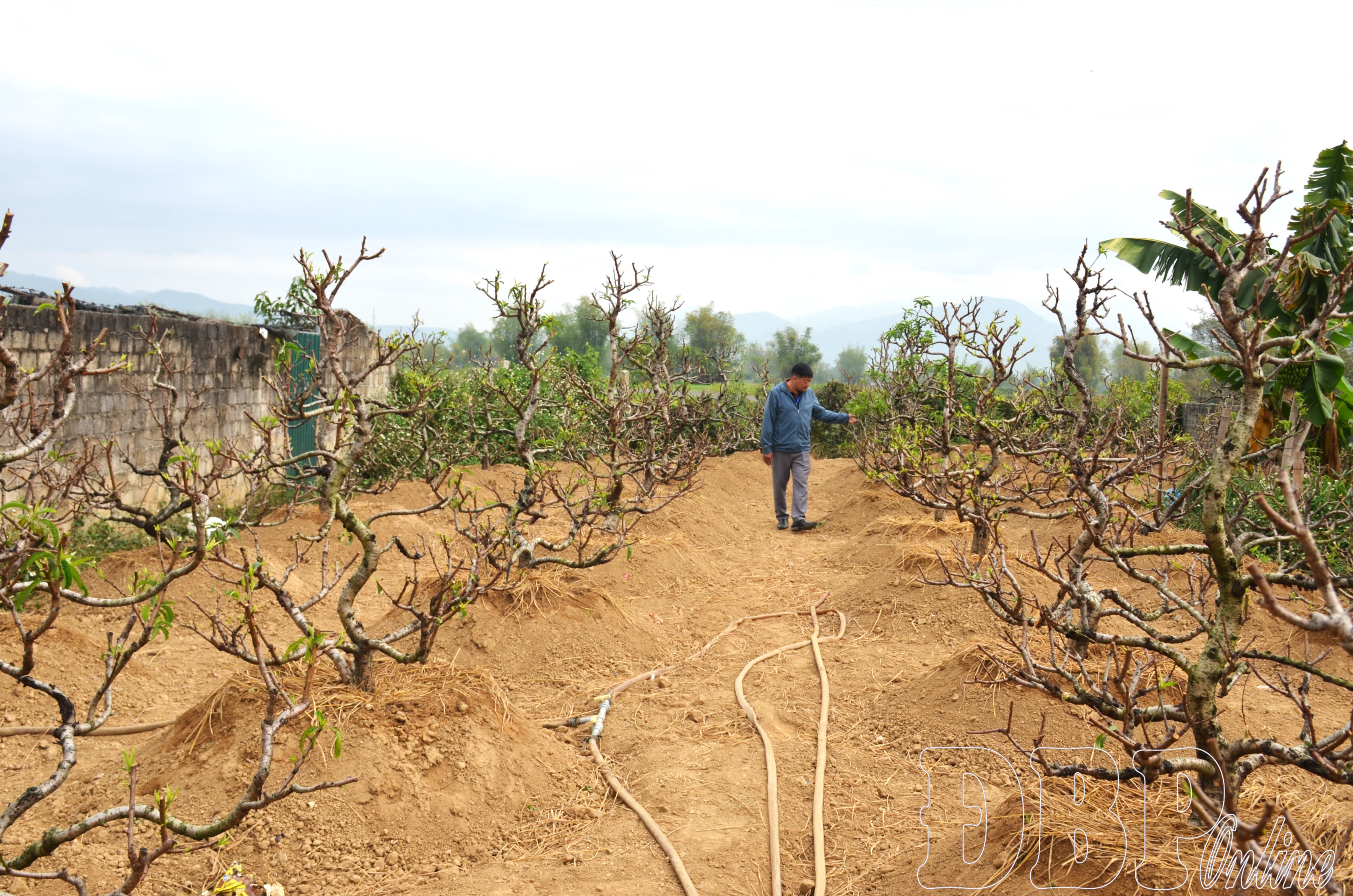 Sau khi các gia đình, cơ quan và đơn vị kết thúc việc thuê đào dịp tết, ông Bùi Đình Tình, thôn Việt Thanh (xã Thanh Nưa) tất bật đi thu hồi những gốc đào đã cho thuê đưa về vườn chăm sóc. Để thuận lợi cho việc vận chuyển và chăm sóc cây, năm nay ông Tình đã chuyển vườn đào ra khu vực gần mặt đường. Vườn đào rộng khoảng 1.000m² của gia đình ông được chăm chút cẩn thận, chuẩn bị cho vụ đào phục vụ tết năm sau.