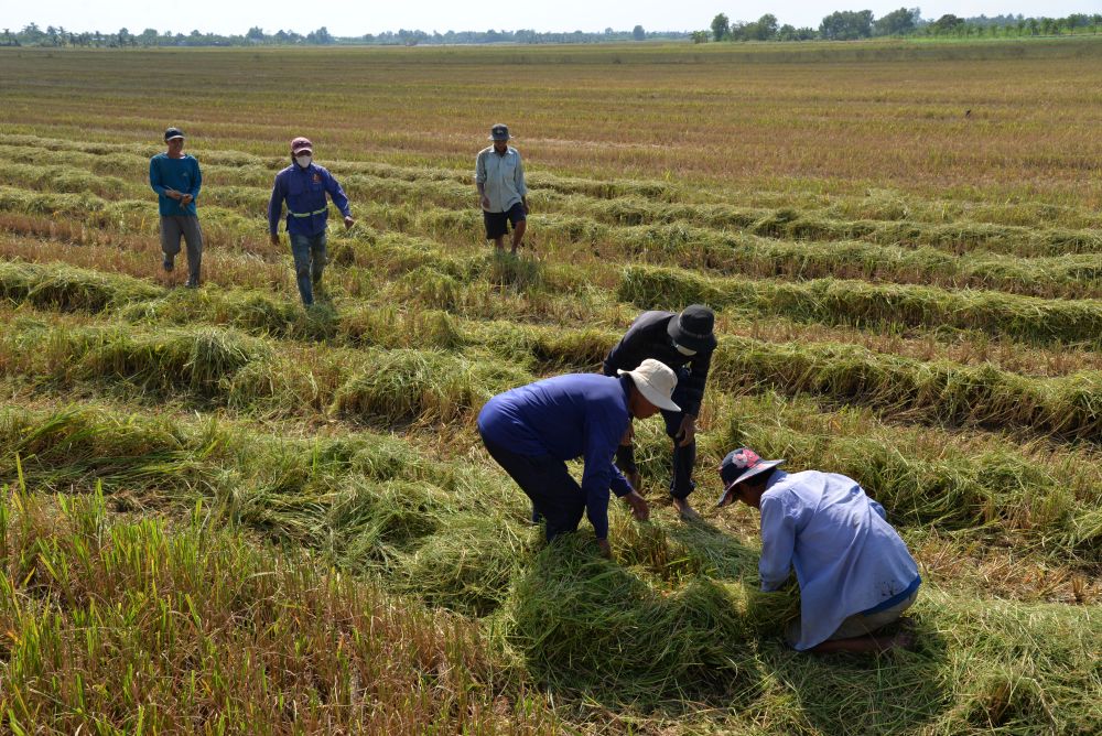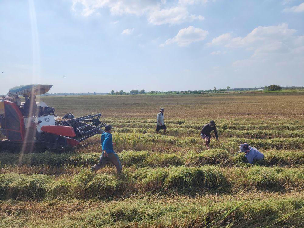 Nhóm thợ khuân lúa tại xã Long Bình cùng nhau săn bắt chuột sau khi máy gặt lúa đi qua. Một buổi chiều "săn bắt" đầy hứng khởi trên cánh đồng vừa thu hoạch xong.
