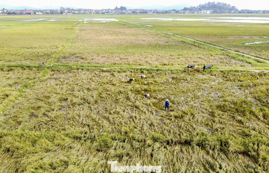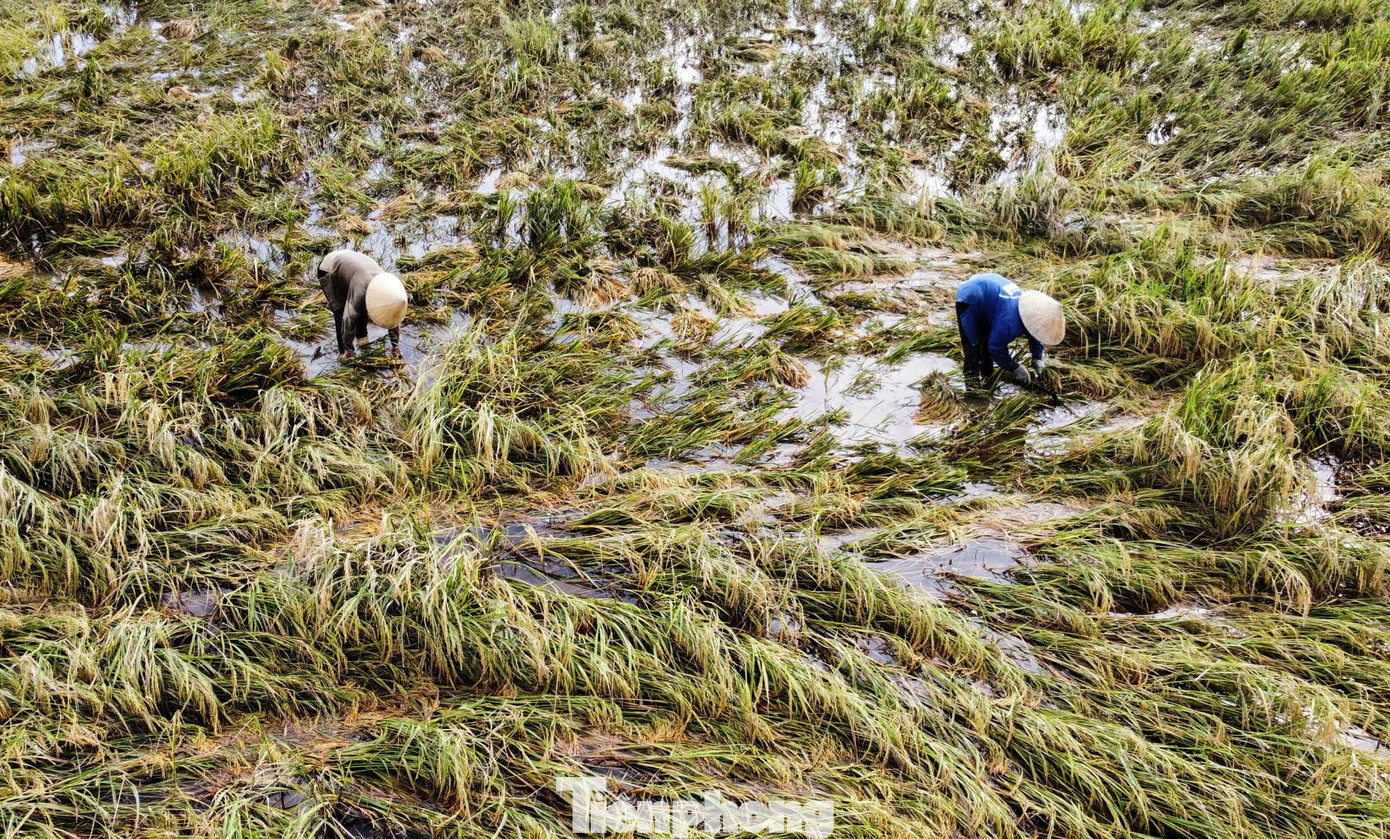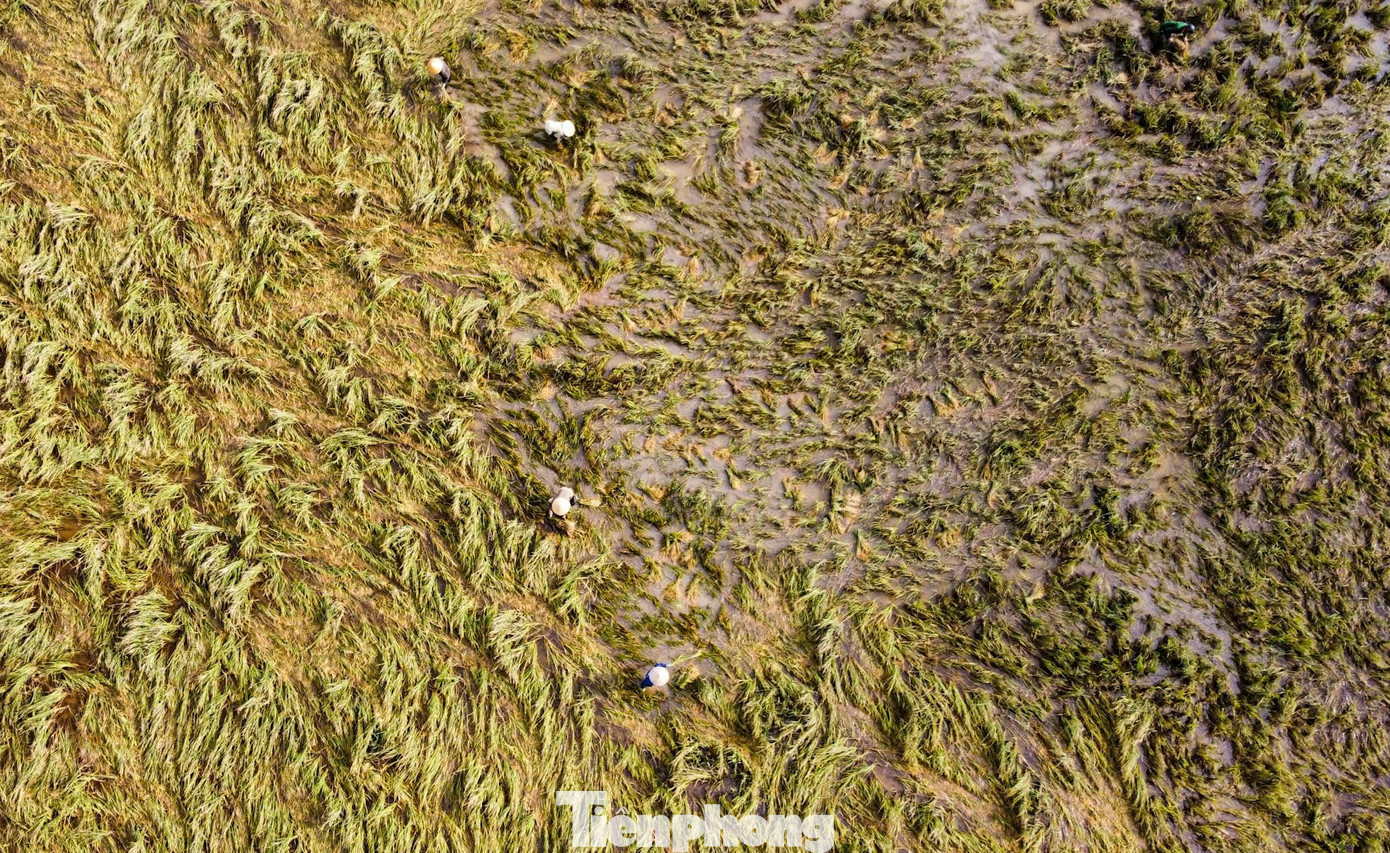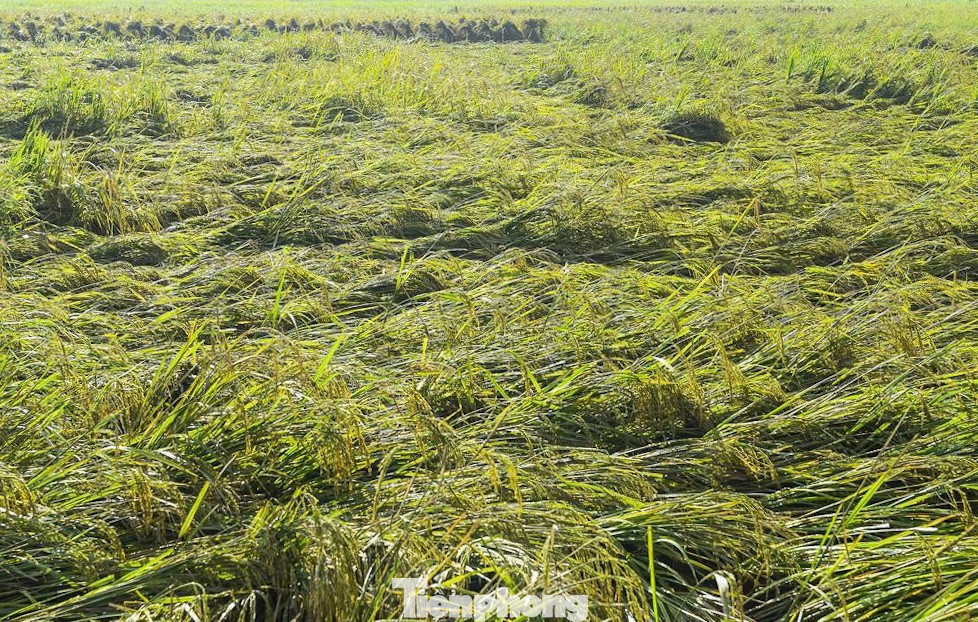 Theo ghi nhận, nhiều cánh đồng lúa gãy rạp, nằm ngâm nước lâu ngày, năng suất giảm.