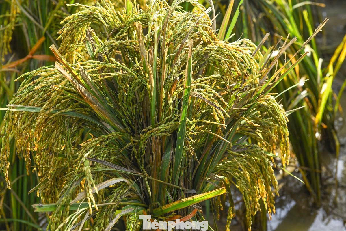 Những bông lúa vốn vàng óng, trĩu hạt, nay xỉn màu vì bị ngâm lâu trong nước.