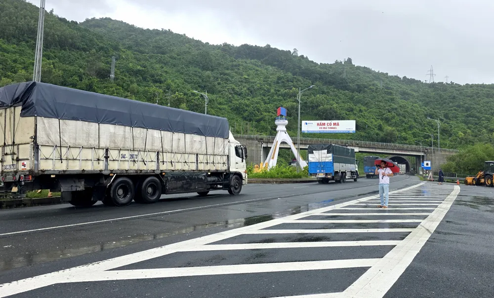 Trạm CSGT Ninh Hòa điều tiết phương tiện qua hầm Cổ Mã chiều 22-11.