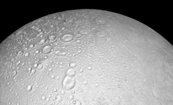 Nhóm của Tiến sĩ Richards đã mô phỏng thành phần băng trên bề mặt và trong các "bức tường băng" tạo thành hình sọc hổ khi quan sát Enceladus từ trên cao. Ảnh: NASA / JPL-Caltech.