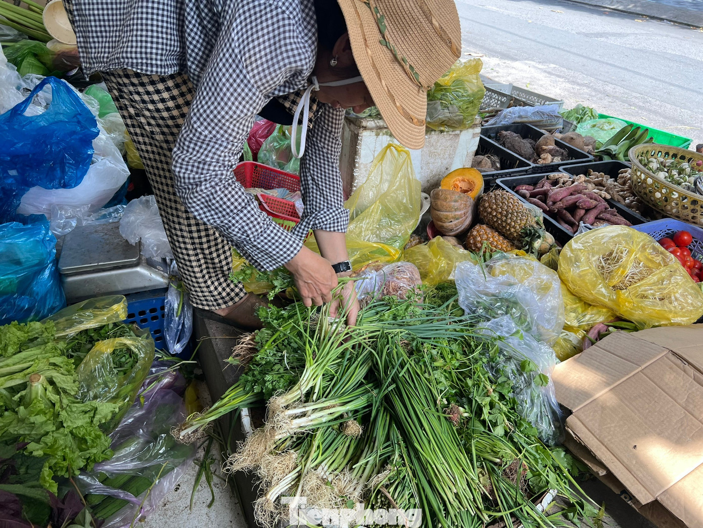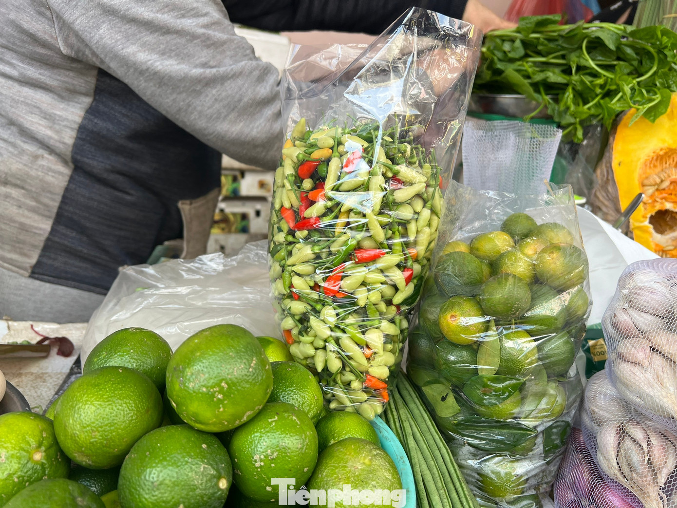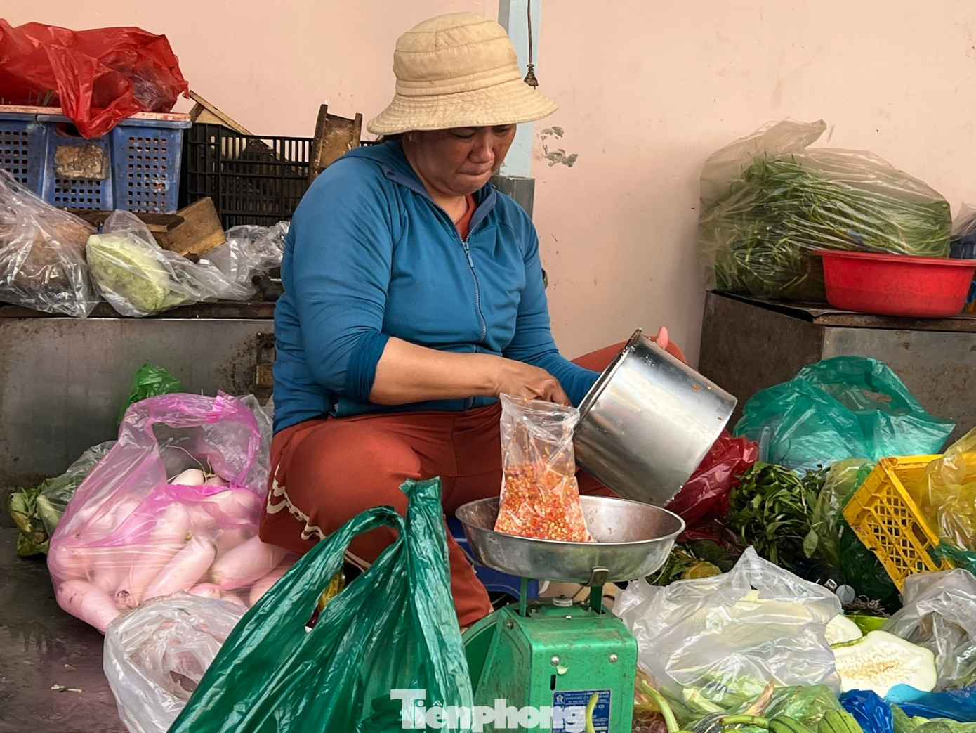 Hành lá giảm nhẹ hơn chút nhưng cũng từ 100.000 - 120.000 đồng/kg. Tiểu thương giờ chỉ bán hành, ớt chứ không cho thêm như trước