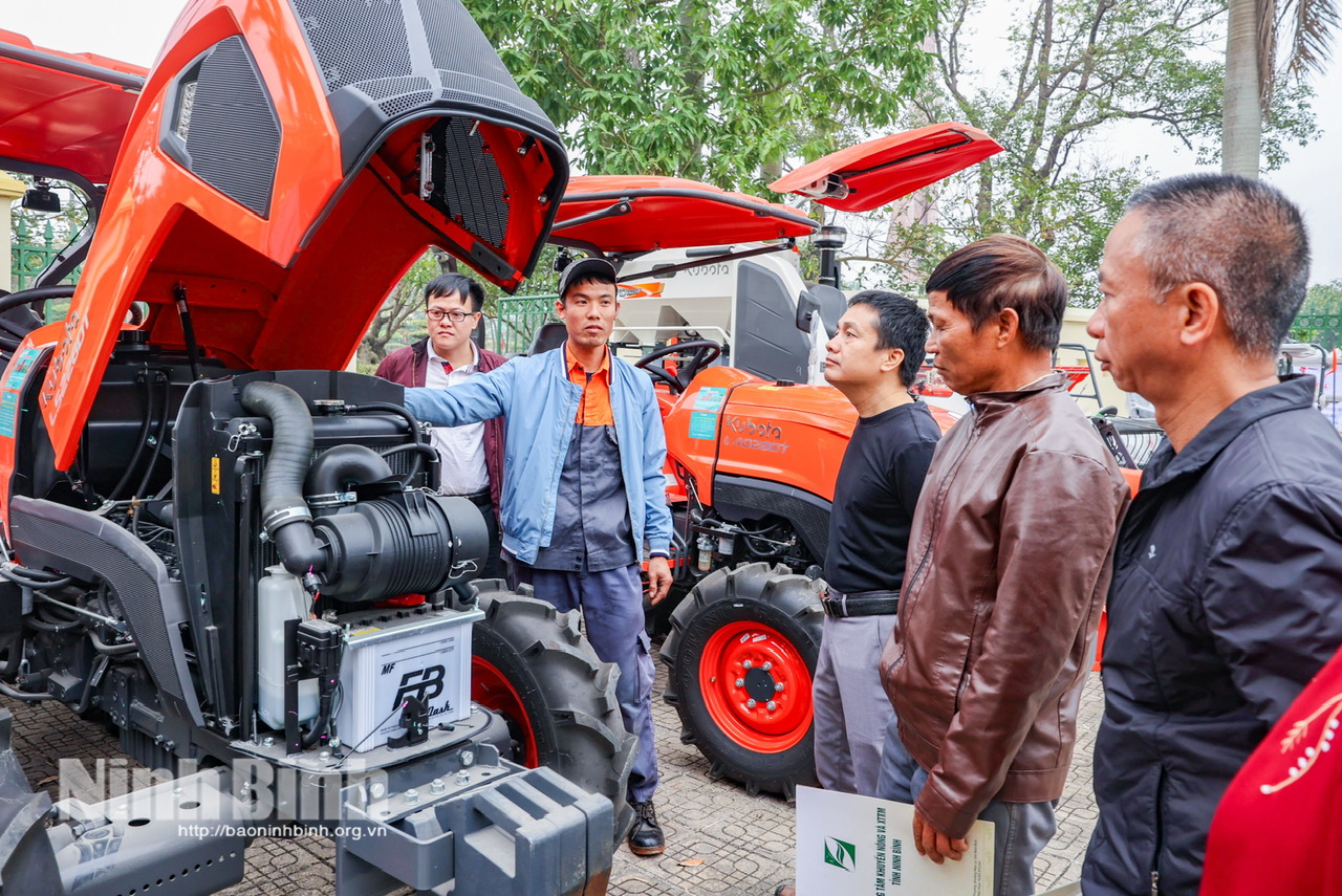 Các hội viên CLB Đại điền tham quan, tìm hiểu các dòng máy nông nghiệp thế hệ mới. Ảnh: Viết Dư