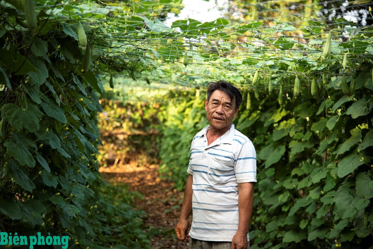 Trồng được một giàn mướp khía ở đảo là việc khá kỳ công, vì không có tre để làm giàn. Ảnh: Lê Văn Chương