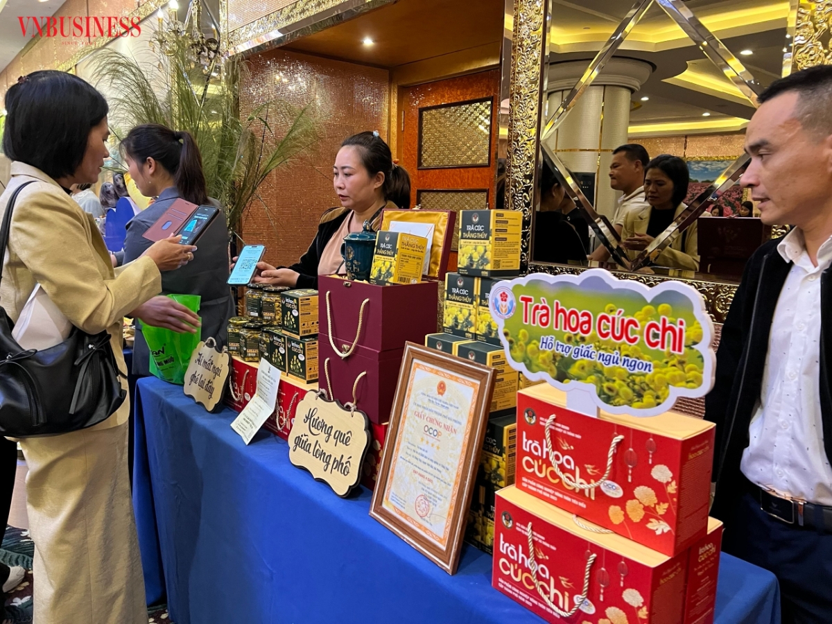 Sản phẩm trà hoa cúc chi của HTX Thắng Thủy (Hải Phòng) có mặt tại nhiều triển lãm, hội chợ.