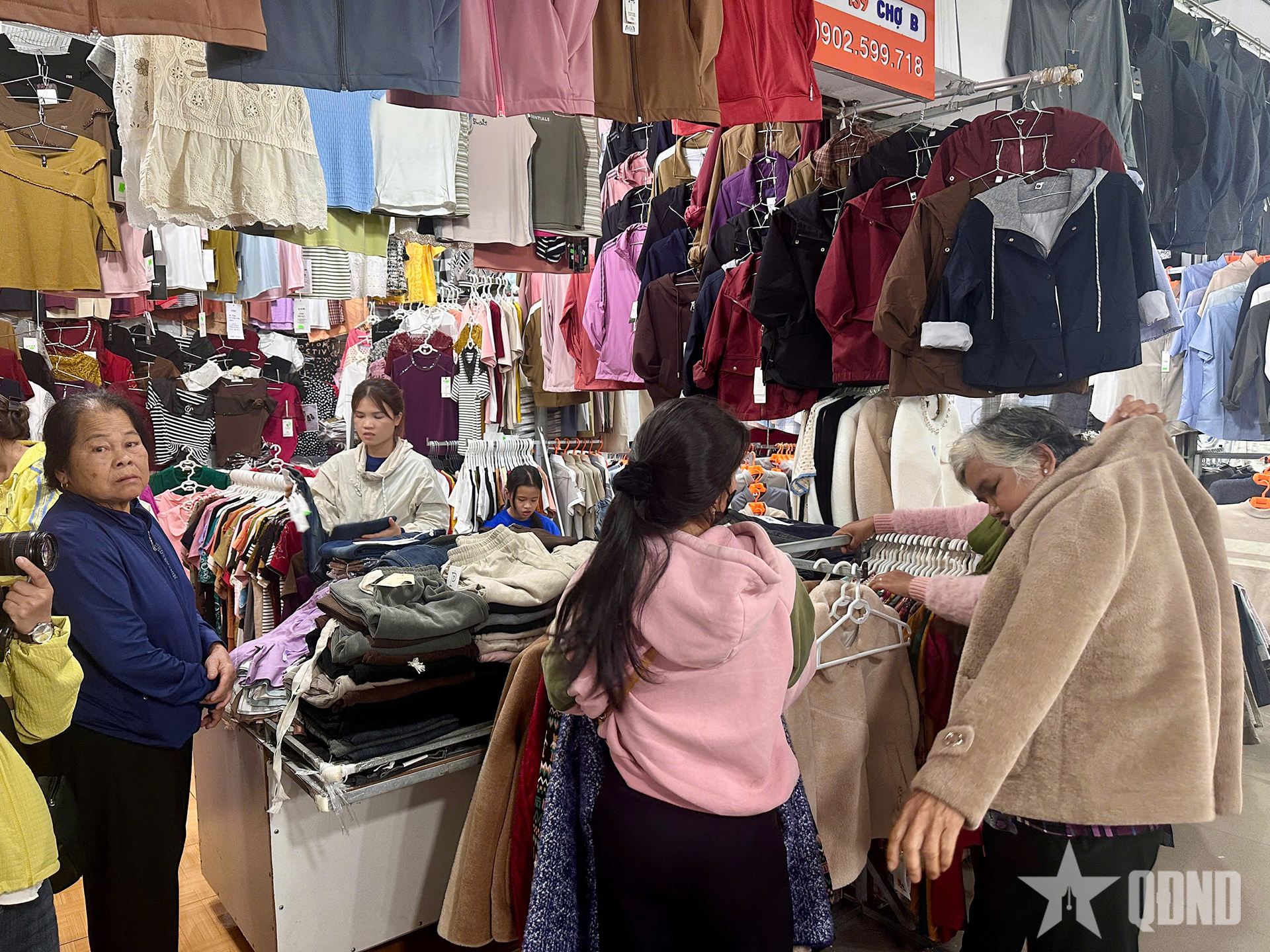 Người dân sắm quần áo tại Chợ trung tâm Buôn Ma Thuột trước thềm năm mới.