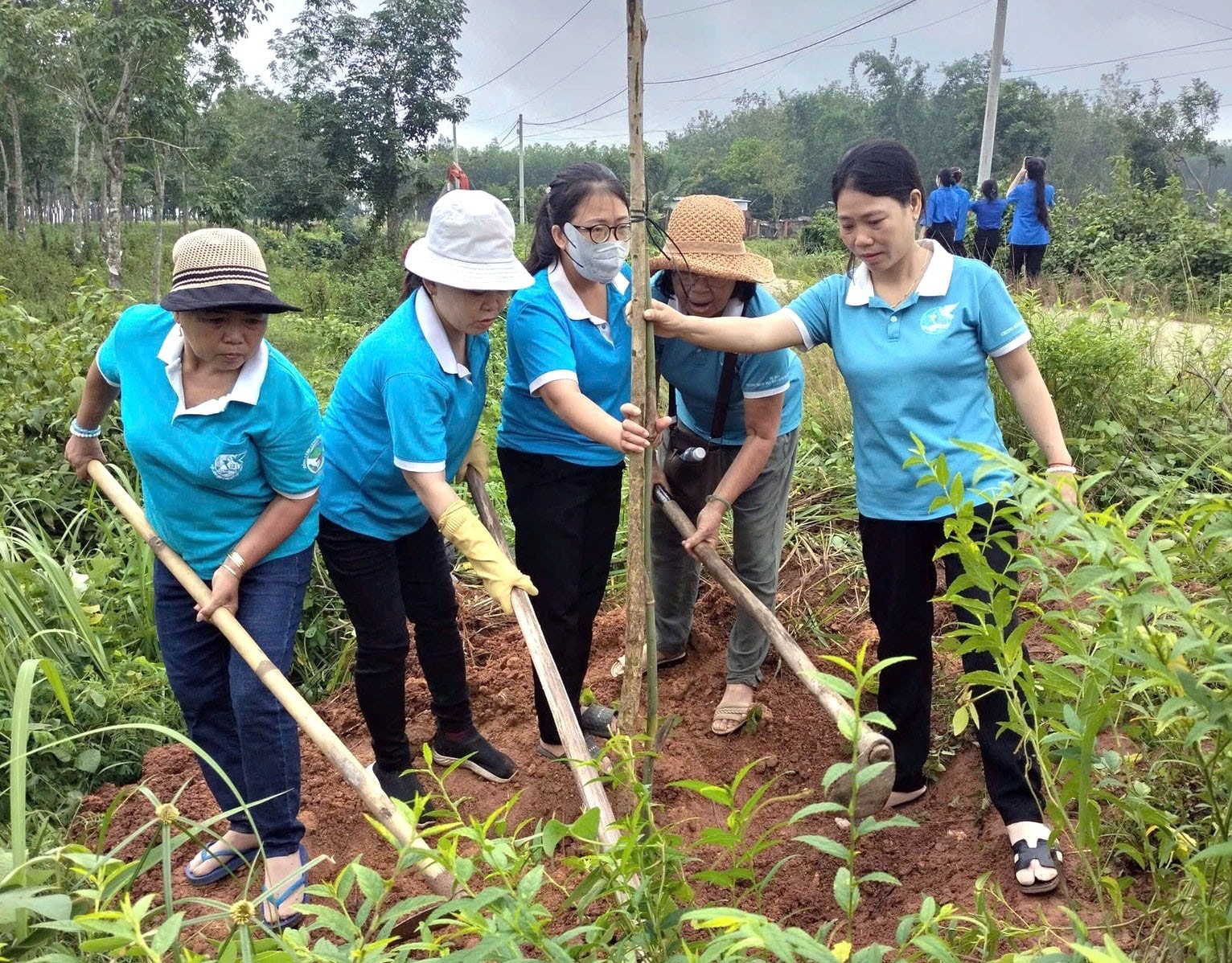 Hội viên phụ nữ xã Suối Kiết trồng cây dọc tuyến đường nông thôn