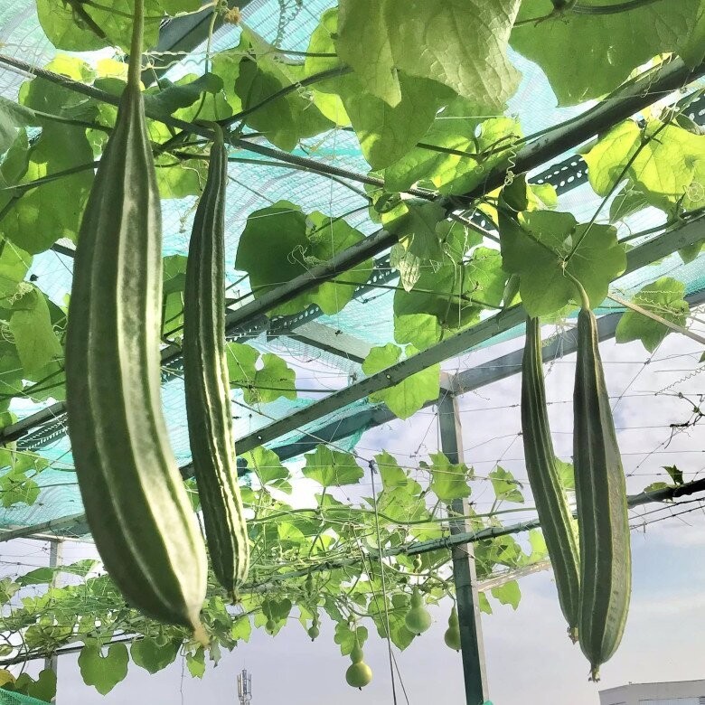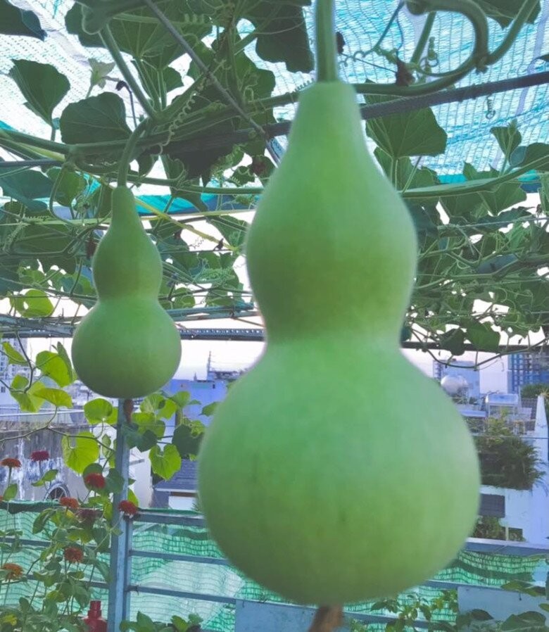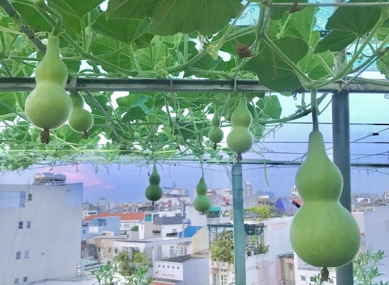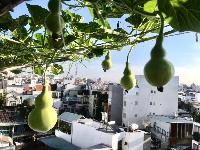 Bước chân vào đây, cảm giác như lạc về một miền Tây thu nhỏ giữa lòng phố thị với những giàn mướp khía, bầu hồ lô lủng lẳng đầy đầu. Những hình ảnh ông chia sẻ luôn nhận được sự trầm trồ từ người hâm mộ trước khả năng làm nông "mát tay" của mình.