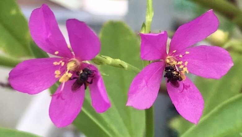 Không chỉ chú trọng vào cây ăn quả, khu vườn của nghệ sĩ Trung Dân còn có những góc cực kỳ "chill". Ông nâng niu cả những loài hoa dân dã như hoa sâm đất tím rịm, mỏng manh mọc xen kẽ trong các chậu rau. Ông bày tỏ: "Bông sâm đất mọc hoang dại từ đất trồng rau... nhìn cũng đẹp".