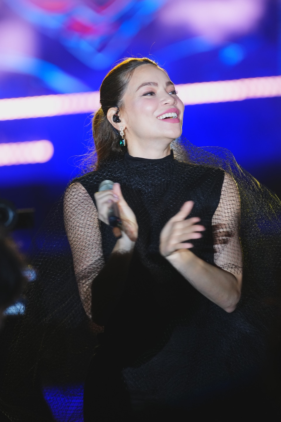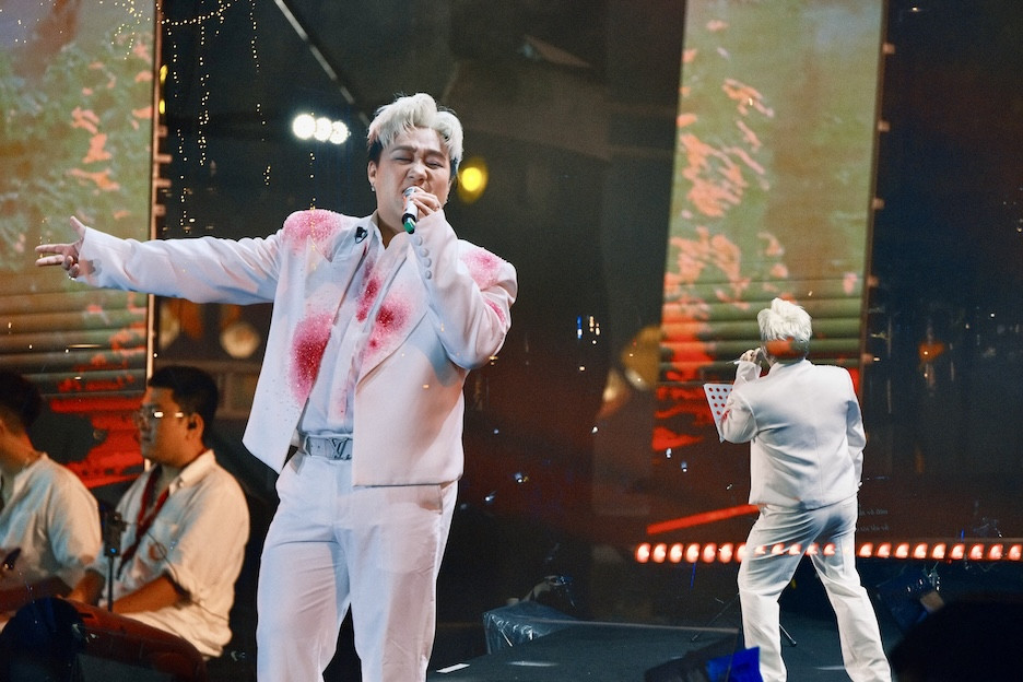 Sara Lưu và Dương Khắc Linh trên sân khấu.