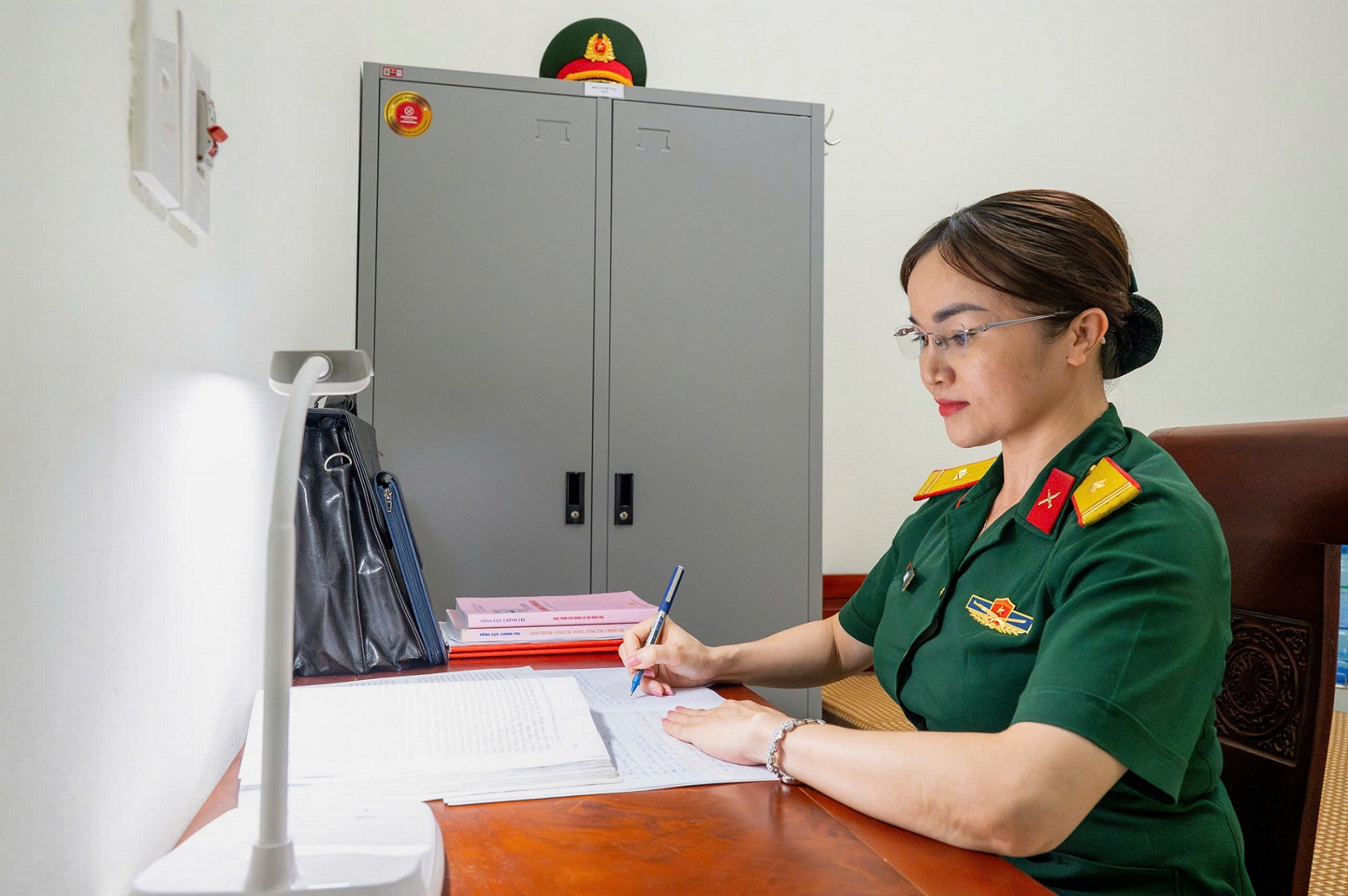 Trung tá Nguyễn Thị Thủy, bạn cùng lớp với Nga tâm sự: “Bạn Nga là học viên có thái độ học tập rất nghiêm túc, luôn ghi chép cẩn thận, tỉ mỉ từng lời giảng, có khi còn tự làm sơ đồ tư duy cho từng môn. Học cùng chị, chúng tôi như được truyền thêm cảm hứng về tinh thần học tập, rèn luyện”.
