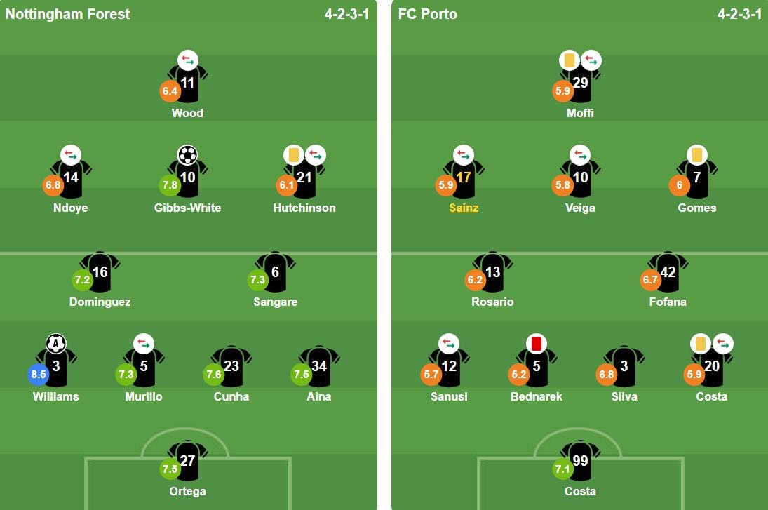 Về cuối trận, Nottingham Forest có thêm cơ hội để kết liễu trận đấu khi Bakwa và Igor Jesus tận dụng tốc độ để phản công nhanh. Tuy nhiên, sự xuất sắc của Diogo Costa trong khung gỗ đã giữ cho hy vọng của Porto kéo dài đến những phút bù giờ cuối cùng.