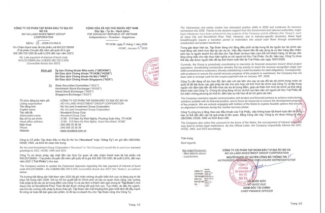 Công ty cũng lưu ý rằng, theo các điều khoản của trái phiếu, việc không hoàn tất thanh toán tiền lãi đúng hạn có thể dẫn đến các hệ quả pháp lý liên quan.