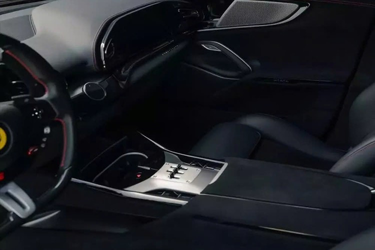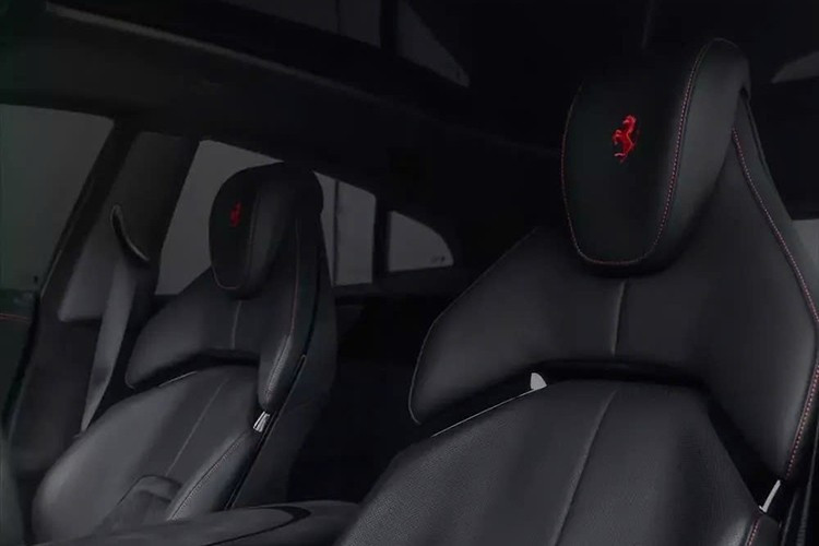 Ngoài ra còn có một vài điểm nhấn kim loại trên sàn xe, và logo Cavallino Rampante (Ngựa chồm) được khâu vào tựa đầu bằng chỉ đỏ. Vô lăng vẫn là hàng nguyên bản, và chúng tôi nghĩ điều tương tự cũng áp dụng cho toàn bộ nội thất.