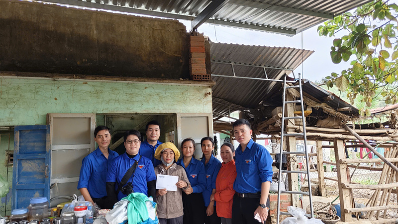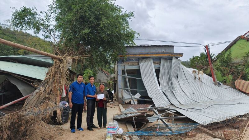 Đoàn thanh niên NSMO trao những phần quà ấm áp nghĩa tình đến các hộ dân bị thiệt hại nặng nề do mưa lũ. Ảnh: CSO