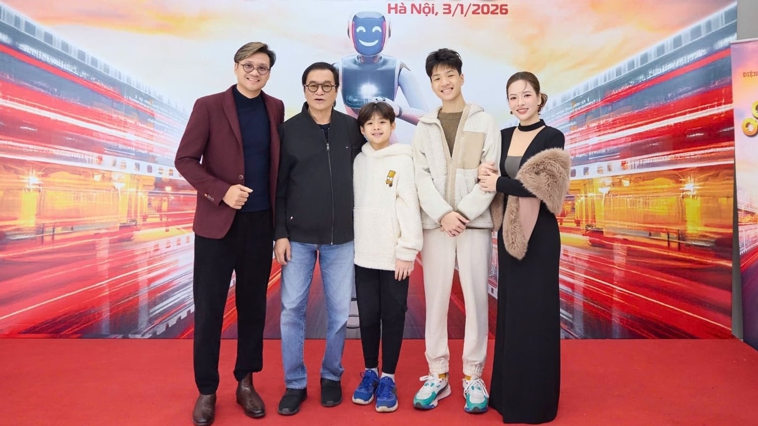 NSND Khải Hưng (áo đen) và gia đình đạo diễn Khải Anh. Ảnh: FBNV