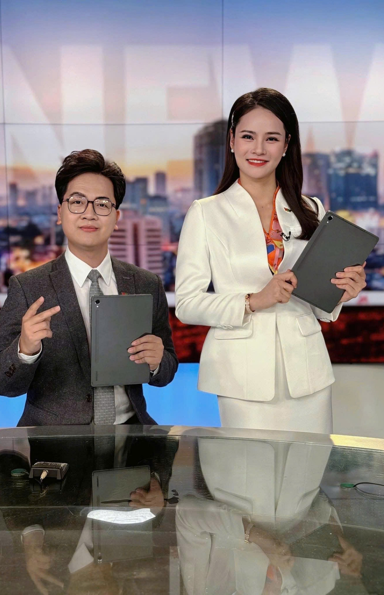 BTV Hữu Trí VTV thân thiết bên bạn dẫn - BTV Thu Hương trước giờ ghi hình.