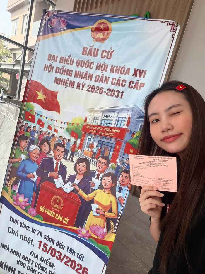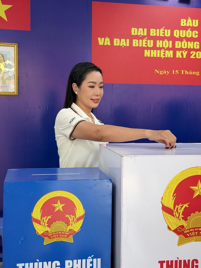 Hoa hậu Lê Nguyễn Bảo Ngọc cũng cập nhật hình ảnh tại điểm bầu cử. Người đẹp cho biết cô cảm thấy tự hào khi tham gia bỏ phiếu trong cuộc bầu cử lần này. Bài đăng của nàng hậu nhận được nhiều lượt chia sẻ từ người hâm mộ, góp phần lan tỏa tinh thần tích cực trong ngày đặc biệt.