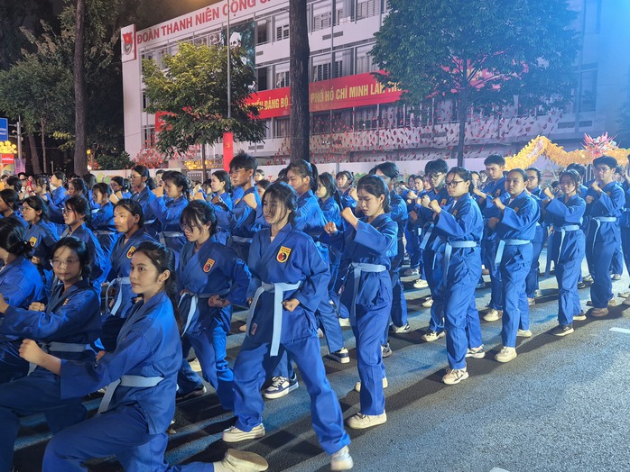 Nhiều hoạt động biểu diễn nghệ thuật đường phố gồm biểu diễn lân, võ cổ truyền, dàn hợp xướng… trên lòng đường phía trước Nhà Văn hóa Thanh niên TP HCM khuấy động không khí trước giờ khai mạc.