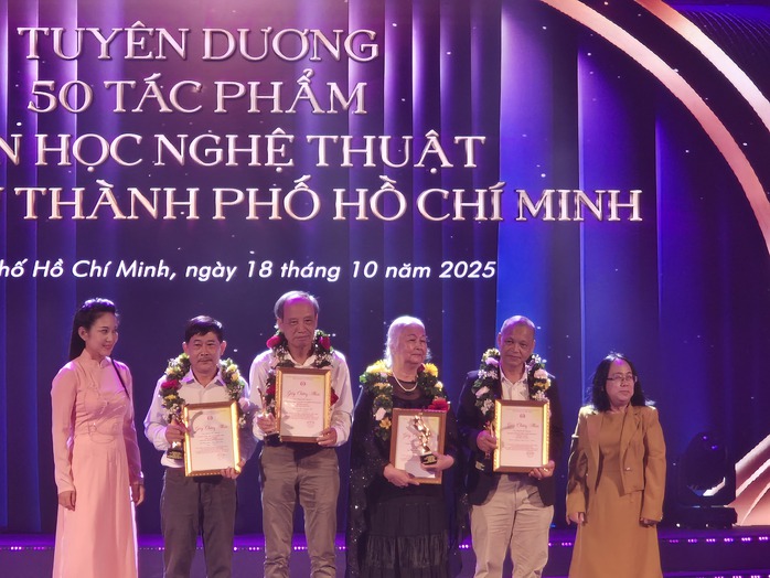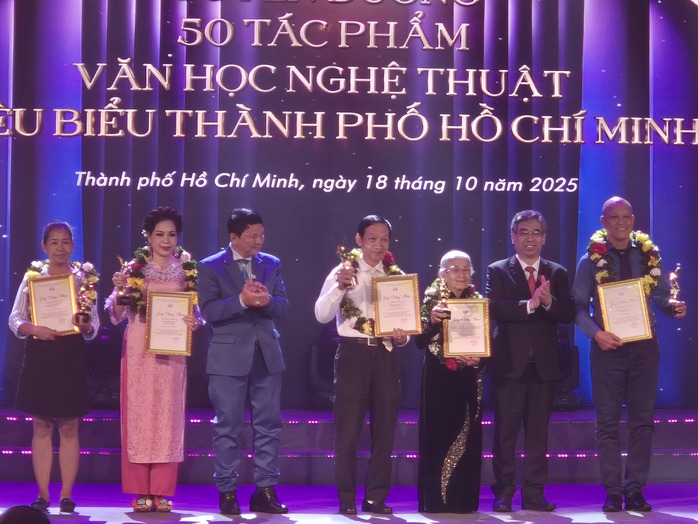 Vinh danh các tác phẩm văn học nghệ thuật tiêu biểu TP HCM, NSƯT Phi Điểu (thứ hai từ phải sang)