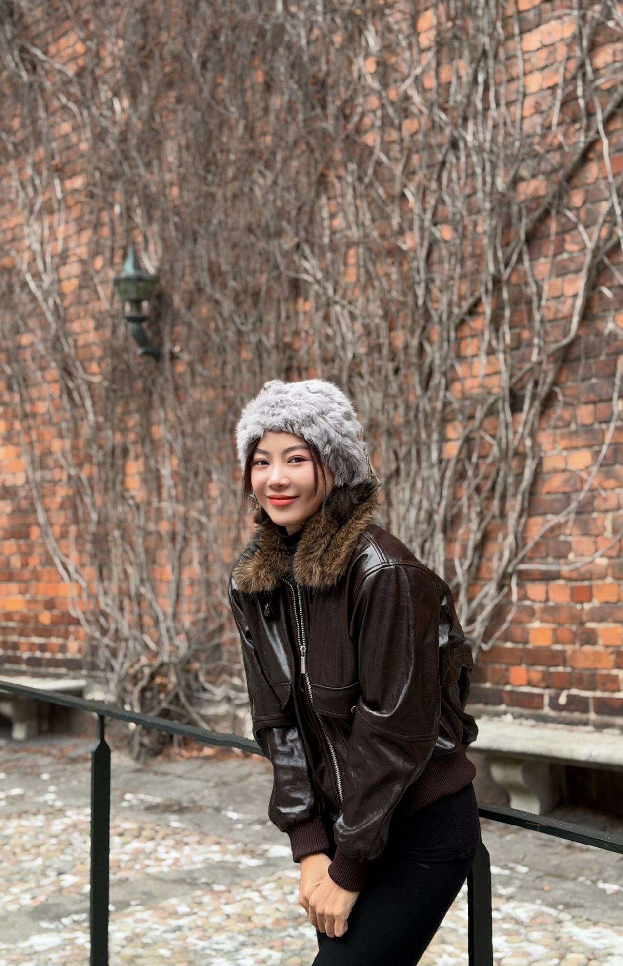 Diễn viên Thanh Hương mặc ấm ngắm tuyết ở trời Tây.