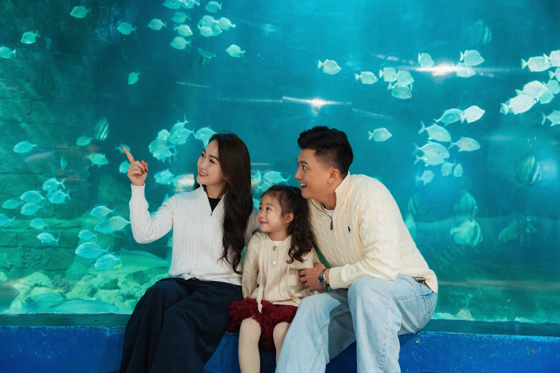 Diễn viên Hà Việt Dũng đưa vợ và con gái đi khu vui chơi.