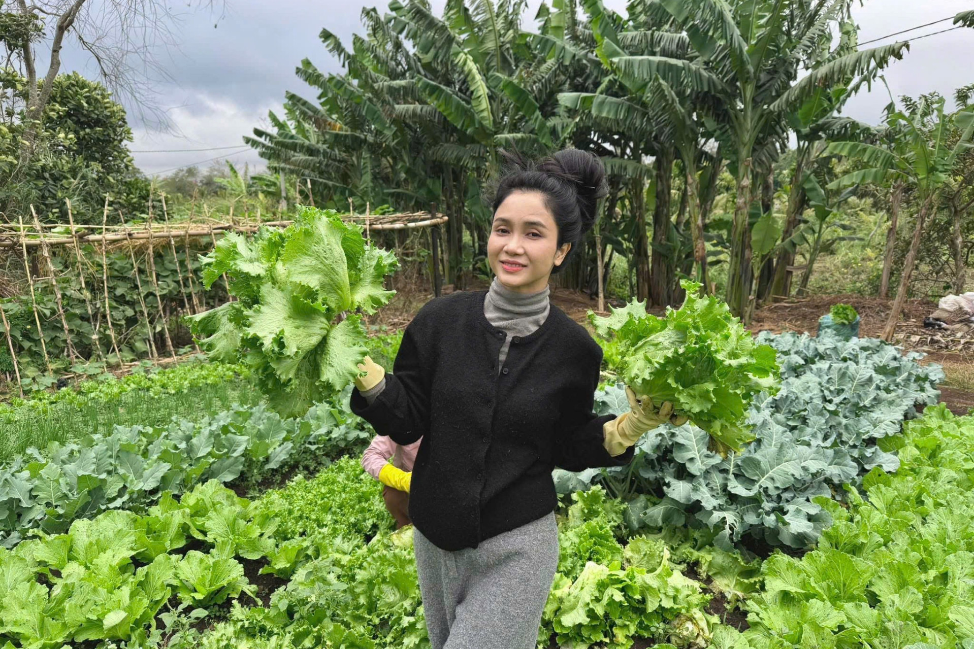 Ca sĩ Phương Anh khoe vườn rau xanh mướt mắt ở quê.