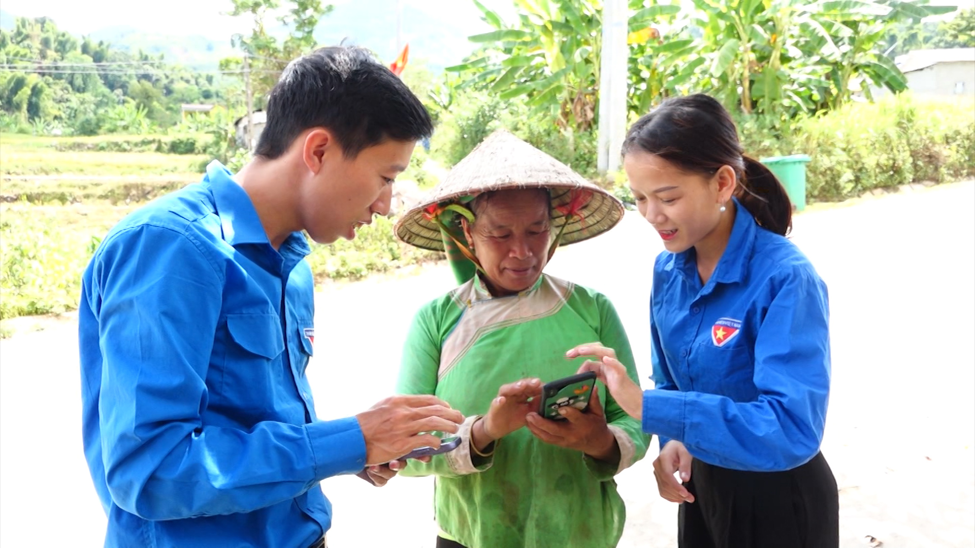 Chị Quyết hỗ trợ người dân cài đặt phần mềm VNeID trên điện thoại thông minh