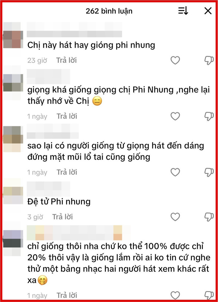 Xuất hiện trong tà áo dài truyền thống, mái tóc đen dài buông nhẹ, nữ ca sĩ bước ra sân khấu với phong thái đằm thắm, dịu dàng. Ngay từ những câu hát đầu tiên, không ít khán giả đã phải sững lại vì cảm giác thân quen. Cách xử lý giai điệu, đặc biệt là những nốt cao vang và sáng, mang màu sắc rất gần với chất giọng từng làm nên tên tuổi của Phi Nhung. Sự tương đồng ấy khiến nhiều người không khỏi nổi da gà, thậm chí có khán giả còn thừa nhận họ thoáng giật mình vì ngỡ như đang được nhìn thấy hình ảnh của nữ ca sĩ quá cố trở lại trên sân khấu.