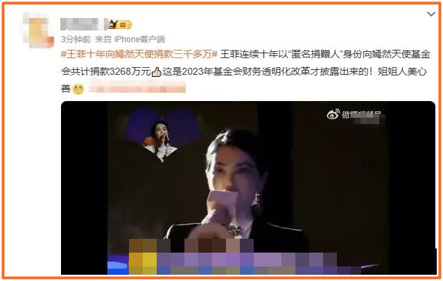 Sáng nay, mạng xã hội bất ngờ lan truyền một đoạn video do một cư dân mạng chia sẻ, thu hút sự quan tâm lớn của công chúng. Theo nội dung được đăng tải, ca sĩ Vương Phi được cho là đã âm thầm quyên góp tổng cộng 32,68 triệu nhân dân tệ cho Quỹ từ thiện Yanran Angel trong suốt mười năm liên tiếp, với tư cách một “nhà hảo tâm ẩn danh”. Quy đổi theo tỷ giá phổ biến hiện nay, số tiền này tương đương khoảng hơn 114 tỷ đồng Việt Nam, một con số khiến nhiều người không khỏi bất ngờ và xúc động.
