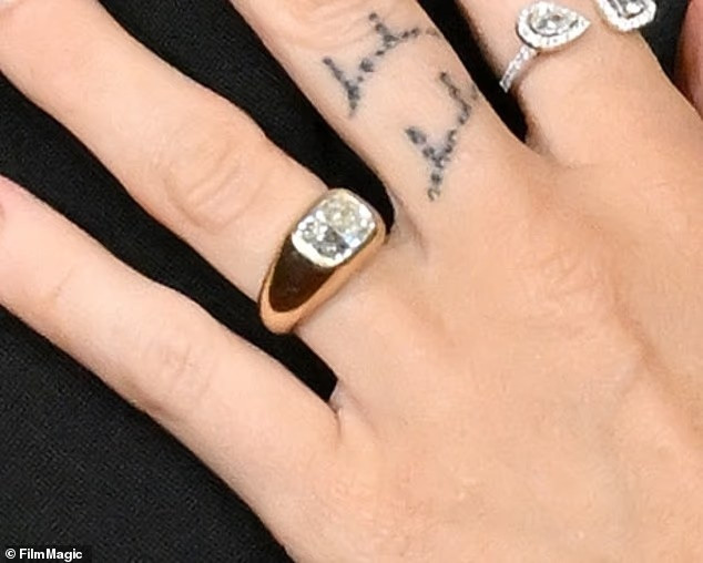 Chiếc nhẫn nhanh chóng được xác nhận là nhẫn đính hôn, do nhà thiết kế Jacquie Aiche chế tác riêng. Viên kim cương cắt hình đệm đặt trên nền vàng 14K được ước tính có giá khoảng 150.000 USD (khoảng 3,9 tỷ đồng)