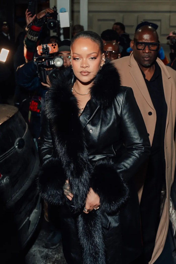 Bên cạnh sự cố nhỏ, Rihanna vẫn gây ấn tượng mạnh với tổng thể trang phục. Là nhà sáng lập thương hiệu nội y có tiếng, cô trung thành với phong cách gợi cảm khi kết hợp áo khoác viền lông cùng bra ren đen và quần tất xuyên thấu. Bộ trang phục được hoàn thiện bằng loạt trang sức bạc nổi bật và kiểu tóc buộc đuôi ngựa gọn gàng, tạo nên hình ảnh vừa cá tính vừa quyền lực - phong cách đã trở thành thương hiệu của Rihanna tại các sự kiện thời trang quốc tế.