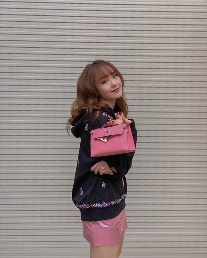Đây không phải lần đầu tiên Minh Hằng xuất hiện với túi Hermès. Nữ ca sĩ - diễn viên từng nhiều lần khoe những chiếc túi Hermès khác trong bộ sưu tập của mình. Hermès Kelly màu đen - một mẫu túi kinh điển không kém phần sang trọng so với Birkin là một trong số đó. Kelly có thiết kế thanh lịch hơn, phù hợp cho những dịp trang trọng.